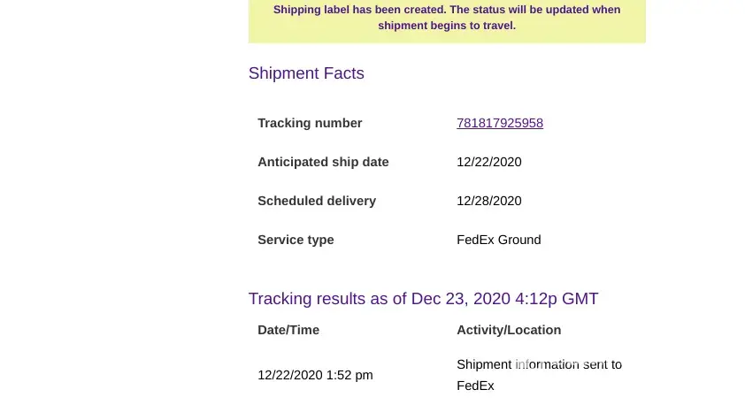 When I checked with FedEx on Dec 23rd(my requested delivery date), I was informed by FedEx that they had not received anything yet from Hazeltons.