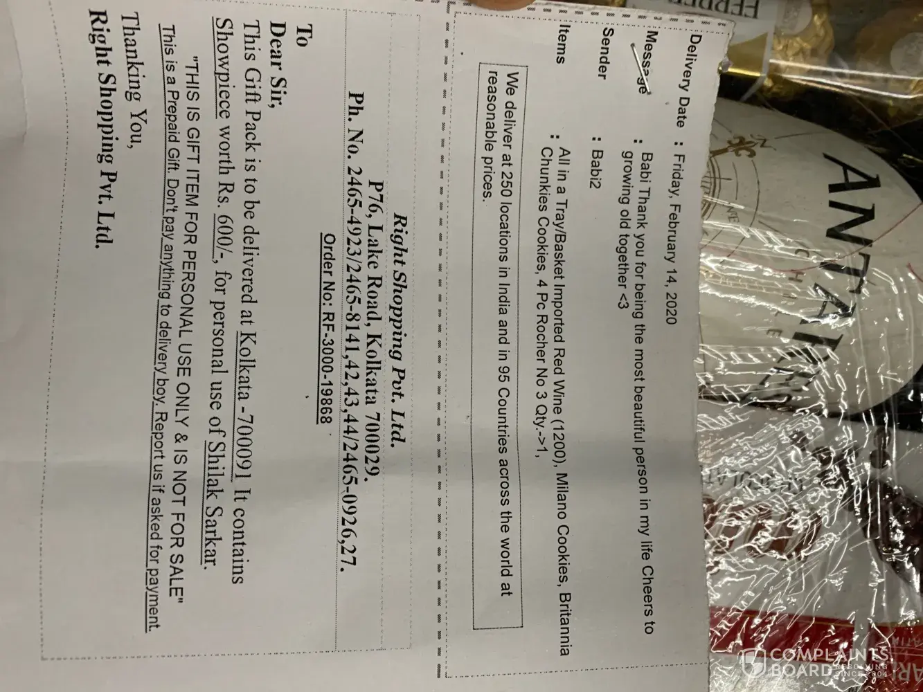 Just went through the same experience. I can see why they aren't on YELP, and why they don't even have a facebook page. They are literally hiding from bad reviews! I'm going to find everywhere I can to give them a bad review. Worst customer service I've ever had, and completely unexpected too. My friend was supposed to get fancy champagne, chocolate covered strawberry bouquet and a birthday balloon which I paid extra for...he got some weird champagne, almond roca, a chocolate bar, and a random cutting board. Most disappointing experience I've had with a company. I may dispute it with my bank...they rob people!