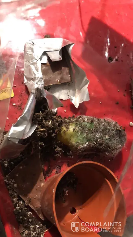 2. When it reached it had a potted plant that was completed smashed and had fungus on it