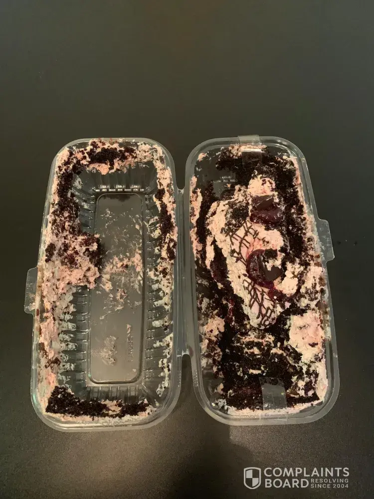 I made an order for a Hazelton’s Vegan Chocolate cake on 11/10/2023. I got to select the delivery date, I selected 11/22/23 the Wed. Just prior to Thanksgiving. My cake arrived the day AFTER Thanksgiving on Fri.11/24/23. It was a damaged WHITE layer cake covered in pastel sprinkles? So very disappointed!