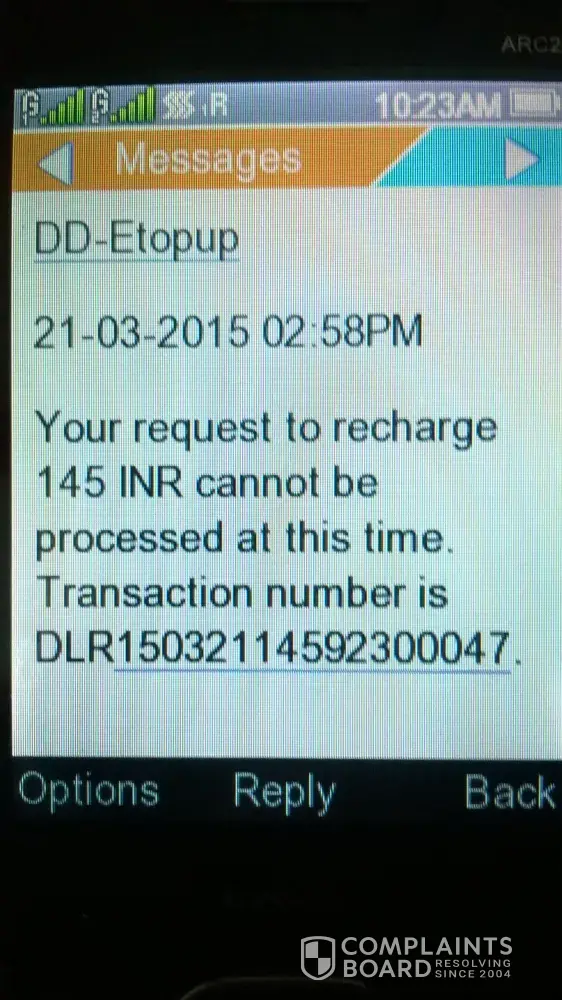 i would like to bring your kind information that i have done a online recharge on 21st of march but recharge was unsucessful, and there was withdrawl of Rs.145(transaction number is DLR15032114592300047) from my account but there was no deposit, . i have call number of times on customer care but there was no response and this was my second recharge.first recharge i have done on 6th of march of Rs.18 and that too was unsucessful.so please you are requested to help me out for claiming in my refund as soon as possible.