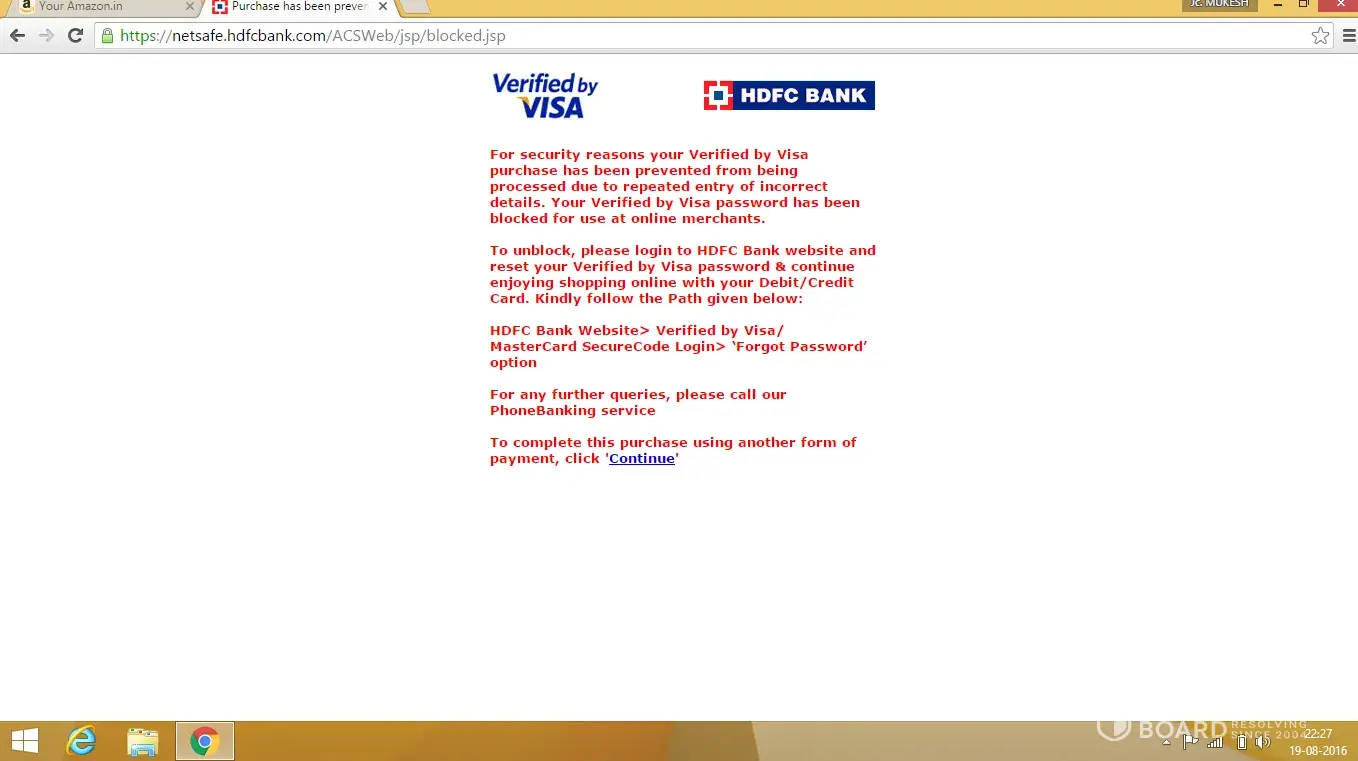 When i try to buy some thing online or place a order there is a problem during the payment process.
