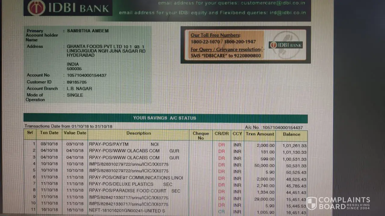 I request you to share your account/customer Id, staff details and registered contact details to talktous@hdfcbank.com with ref ID- TTU170119-07 in the subject line. I will assist you better.