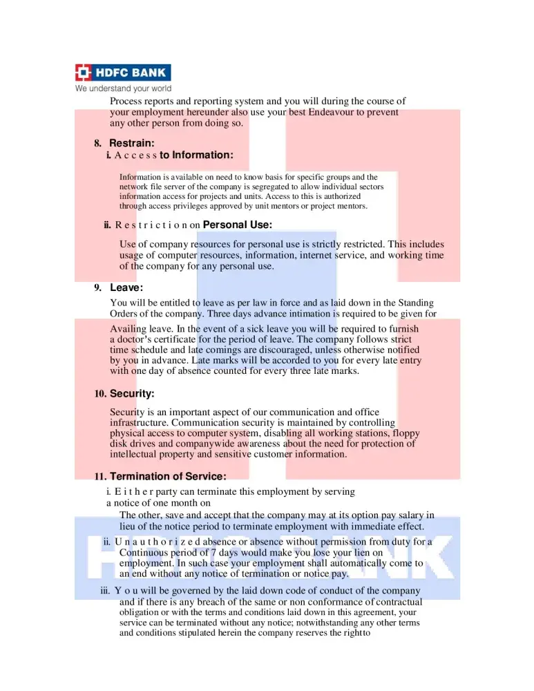 On offer later there is a sign of mayank sharma assistant manager (hr) hdfc bank limited.