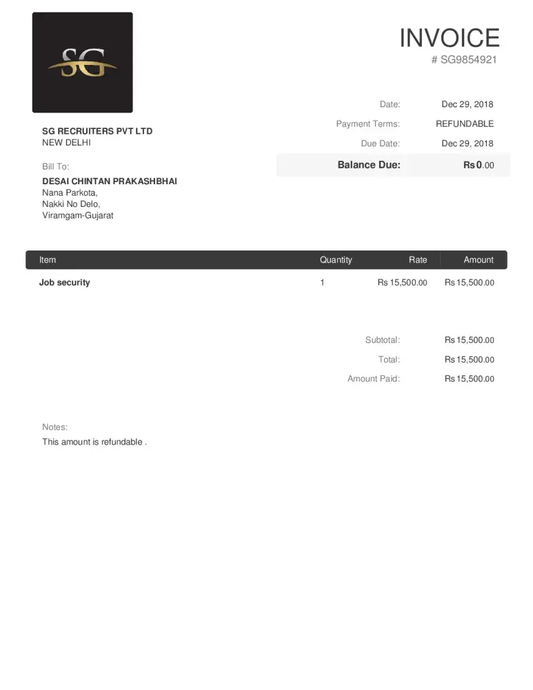 On the name of job money demanded from me total rs 49, 000/-. I already paid 49, 000 and eventhough they demand more money when I stop to pay they called now you are not able to do job without payment and 49000 they will not refund to me.
