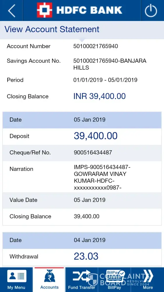 I request you to share your account/customer Id, complete issue and registered contact details to talktous@hdfcbank.com with ref ID- TTU060119-02 in the subject line. Will assist you better.