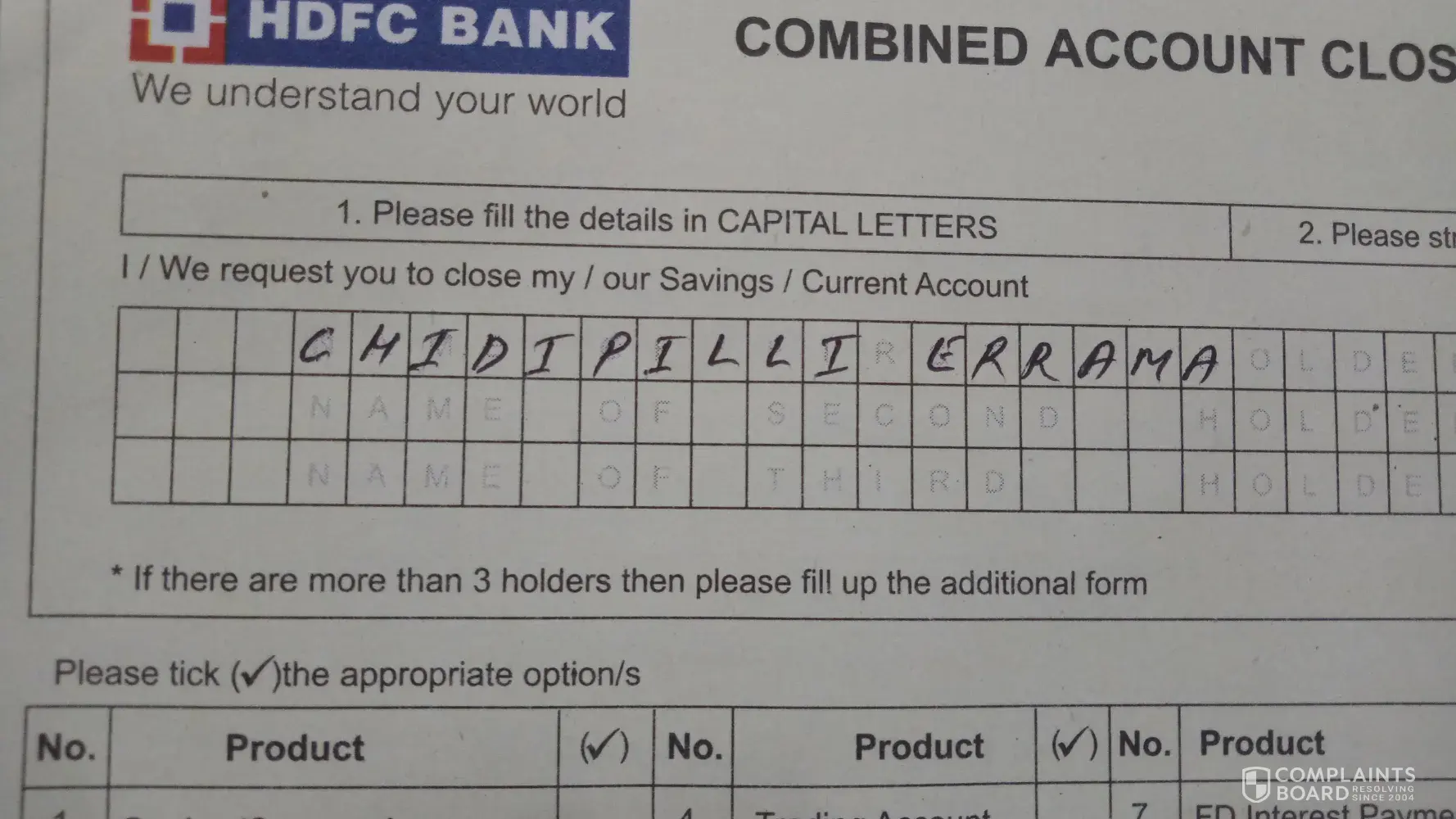 I have given my 5 family savings account to close after misbehave of hdfc bank staff asked me to go out of his branch. i have given on dated 25/10/2019 but till now they did not closed my savings account