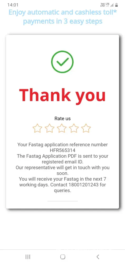 I Prem Kumar Jha applied for fastag on 26 Nov 19. However I couldn't got the same till date. At least 8 times I contacted customer care and same reply receive "one week me ho jaayega". Its really worst situation. Please do needful. Car no JH01DN1137. APPLICATION REF ATTACHED