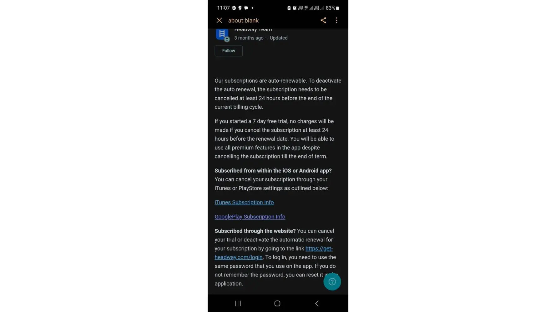 Read full reviewHeadway Subscription refund