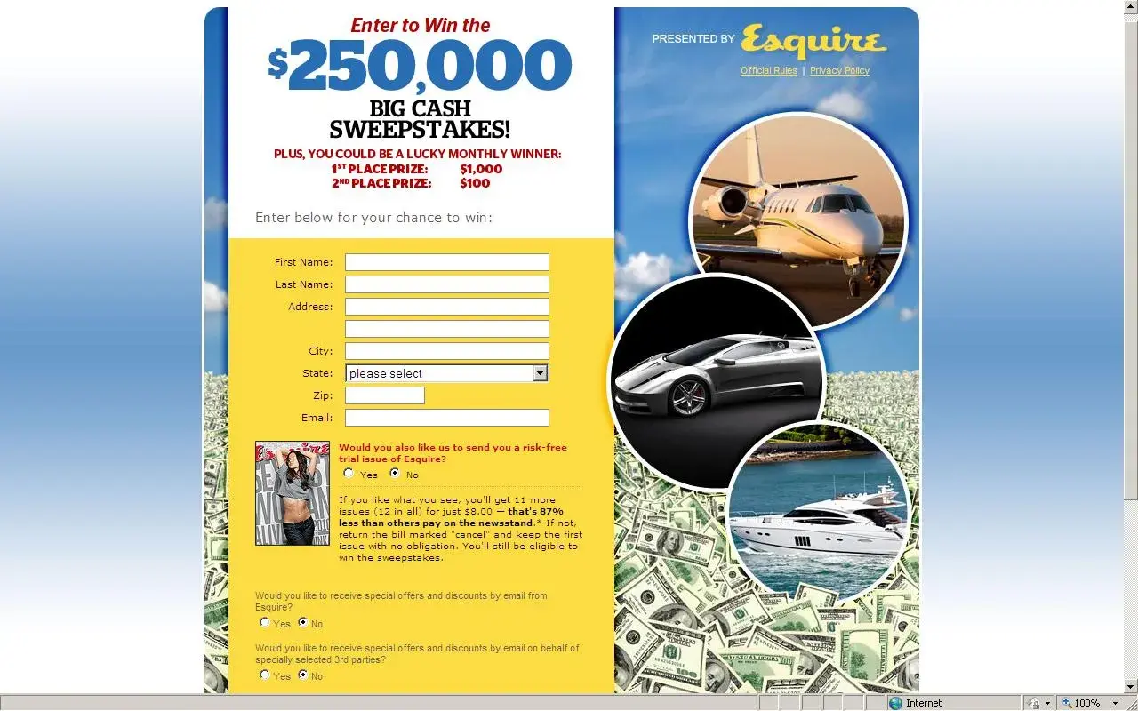 online contest entry results if fraudulent magazine subscription