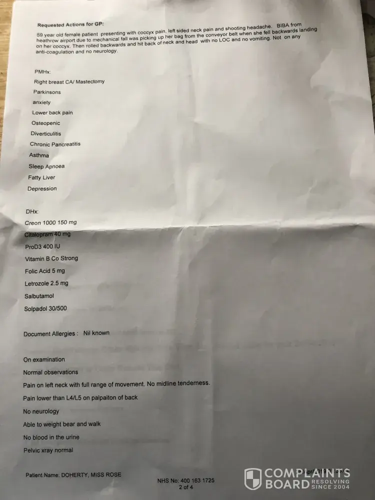 On Wednesday 24/04/19 I was had a accident at Belt 2 when I was getting my back of, I fell and broke my coccyx and had concussion. I reported this to BA REPORT incident NO [protected] .