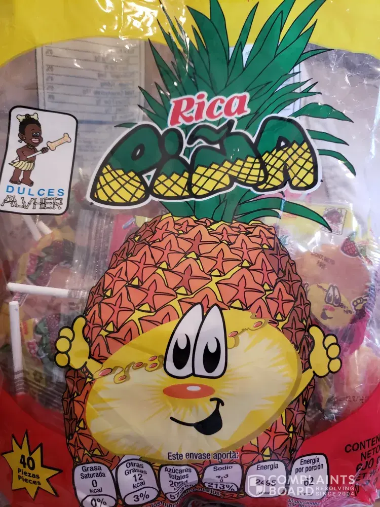 My complaint is regarding the Mexican candy Rica Piña pineapple and chili flavor lollipops. The package has a picture that I, and several people that have seen it, feel is racist. I've included pictures on the first complaint I sent.
