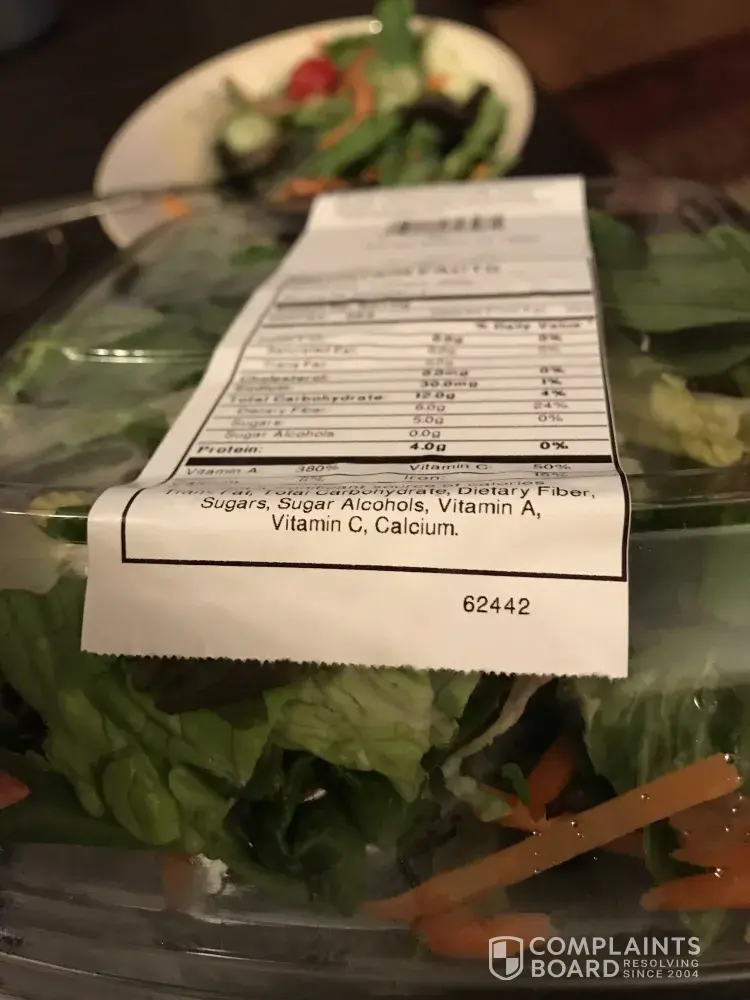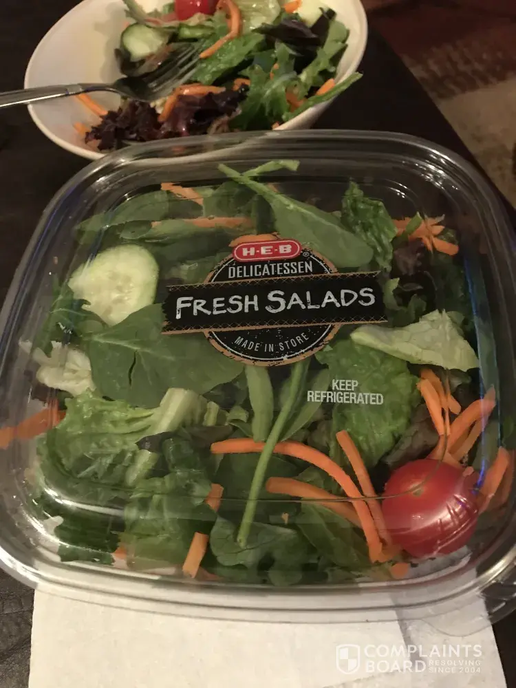 Piece of glass found in heb salad.