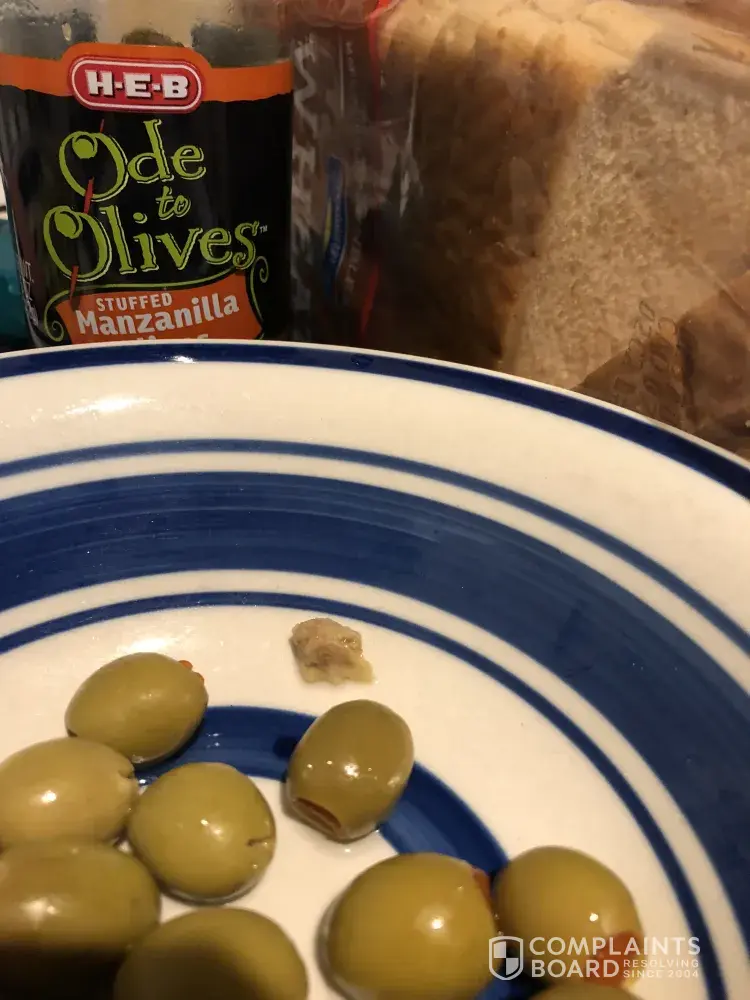 I bought Ode To Olives stuffed olives from HEB Wurzbach, I10 location and while eating i was surprised by an olive seed under my tooth breaks a piece of that tooth followed by unbelievable pain ! I did take a pic so you guys must take care of that