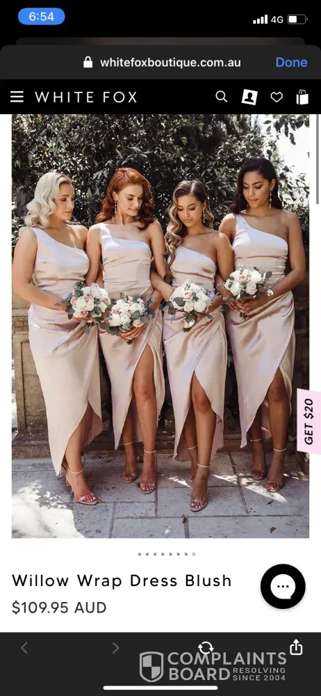 As per the refund policy, it is stated that dresses will receive a full refund if the customer is not happy or the item is faulty. The item that I received was a completely different colour to what was shown in the picture. So I kindly asked for a refund and I was denied. This place just wants to take your money. Don't waste your time. I'm so upset, I've now lost $200. As you can see below they have copied the photo from white fox boutique and claimed that they used the same material which it is not. This is shown in the photo of both dresses next to eachother on the bed