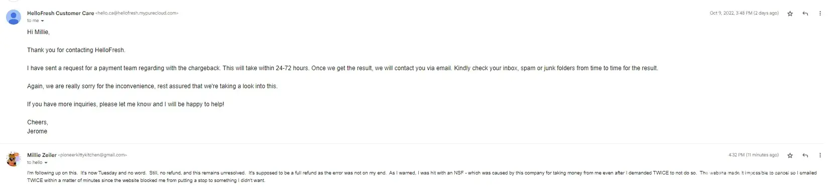 The useless agent informed me that a superior agent would be contacting me later that day via phone call. This agent did contact me and he was more useless than the other agent. He confirmed that Hellofresh has a policy which enables them to steal money from customers. This agent told me that Hellofresh will not be refunding my money.
