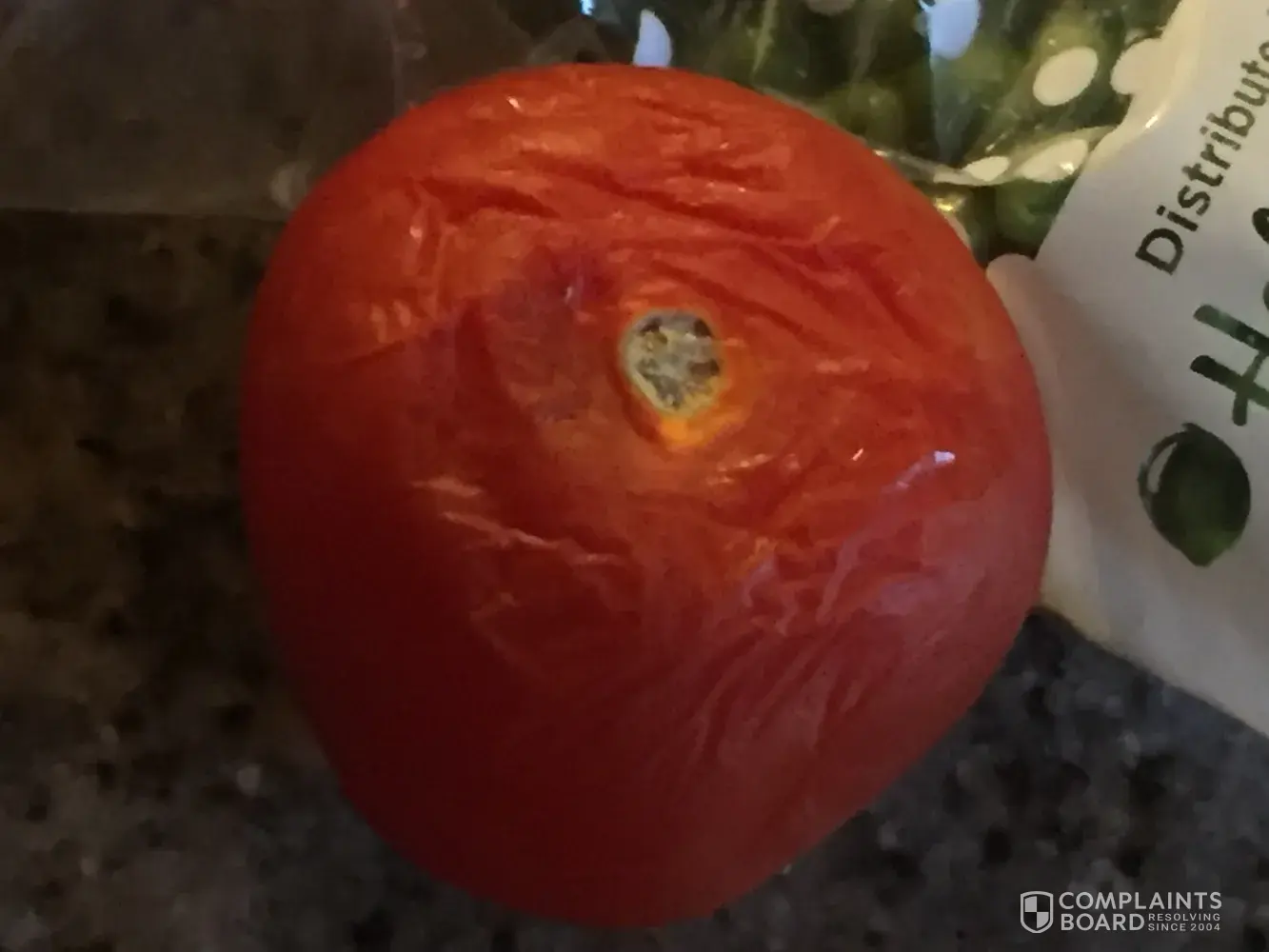 *Tomato unusable - shriveled, mushy, and too rubbery to cut. Please see the attached picture.