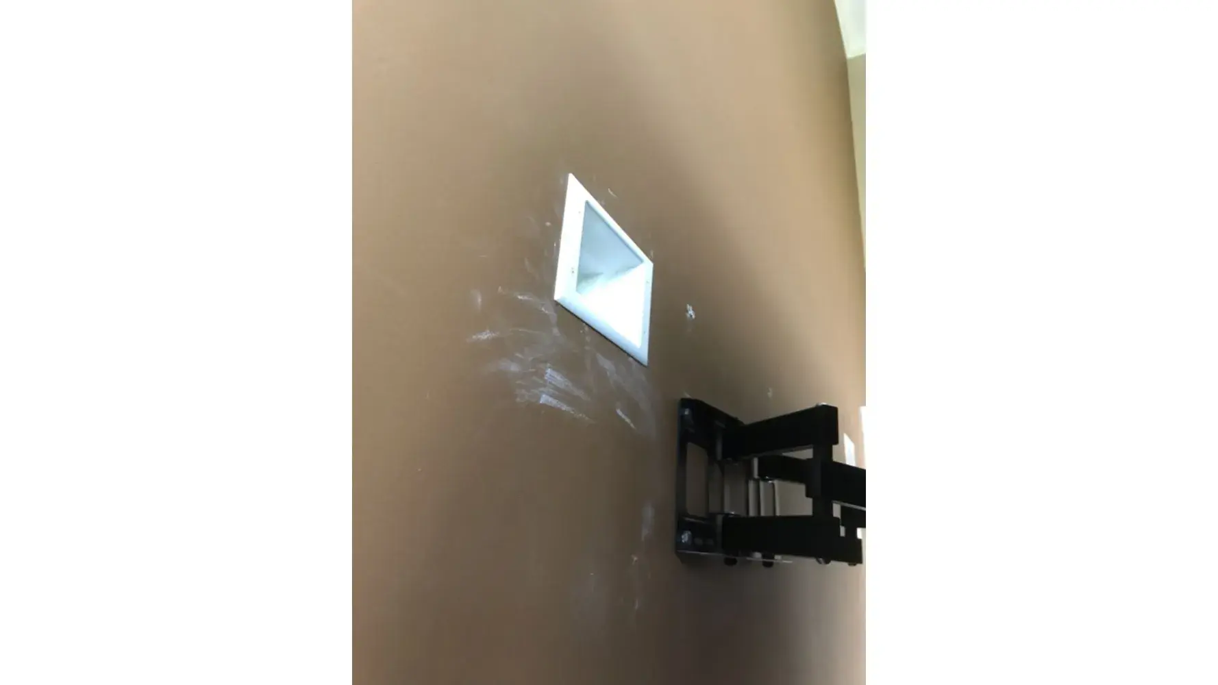 Upon further inspection, we discovered that the bracket had not been secured to the wall studs as it should have been. Instead, it was only attached to the sheetrock drywall. This is a clear violation of the instructions that came with the TV bracket mount, which clearly state that it needs to be secured to the stud on a sheetrock drywall.