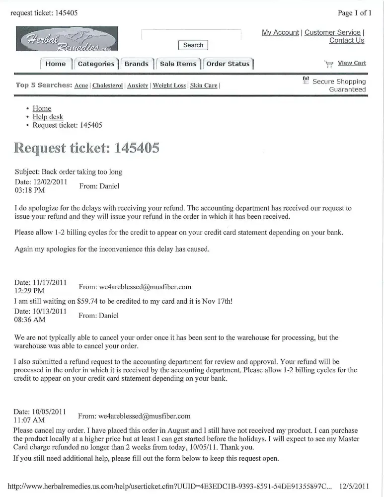 Read full complaint and 40 commentsOverview of Herbal Remedies USA complaint handling