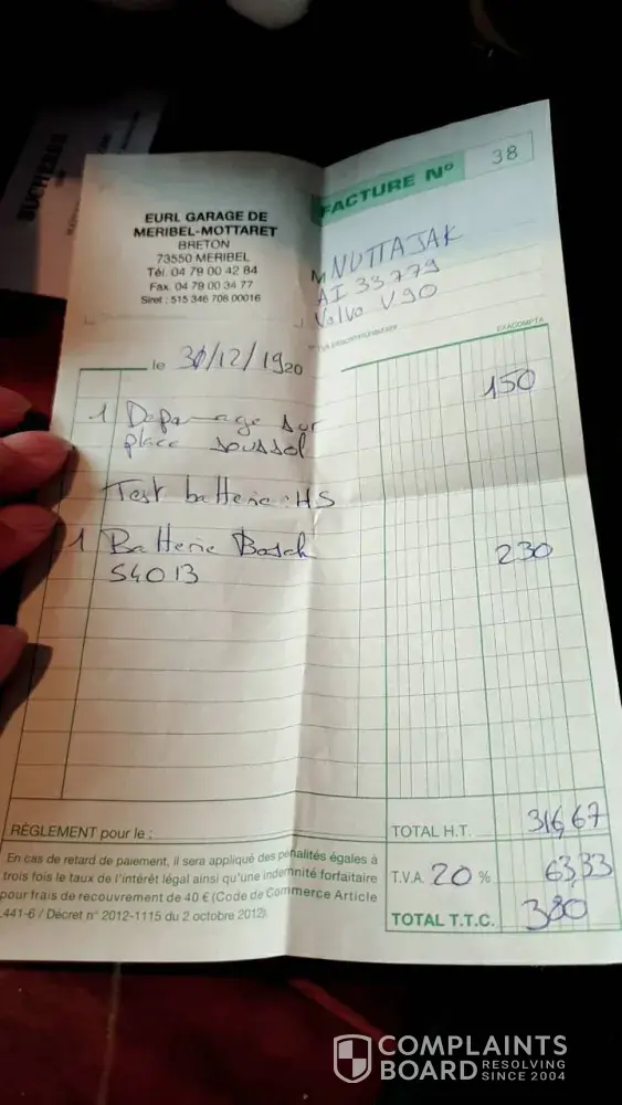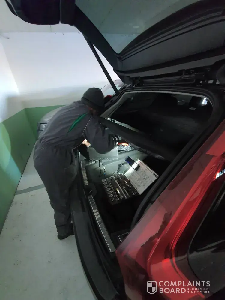 03.10- 03.45 Pm: within 10 minutes, the staff from the garage arrived to the car and help me to connect engine battery and also change the 12 V battery in the trunk, they charged me in total 380 Euro for this service (See photo No.3, 4, 5, 6 and 9 for the information)