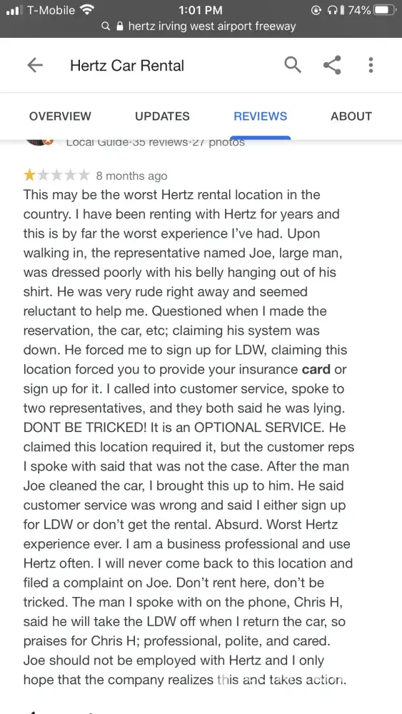 This is fror the 3401 w airport fwy, irving texas location. I went to get a rental reserved for me on behalf on my insurance company, horrible place. I went to Hertz due to recommendation of the insurance company that I have been dealing with for the repairs of my car. I was given Corae, he asked for my drivers license and with that I handed my insurance...
