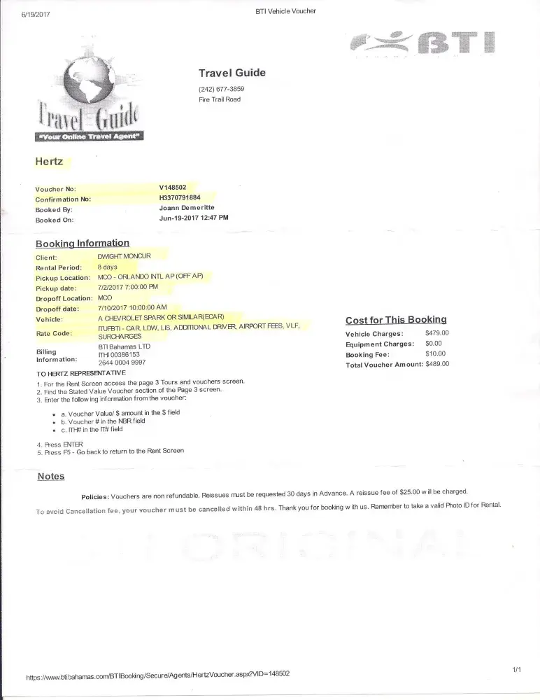 On June 19th I purchased a voucher for my Orlando, Florida car rental at $479.00