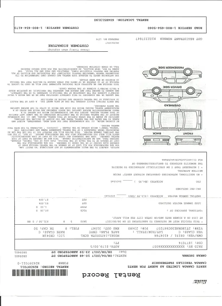 Then, upon returning the car, I was not even given a copy of the receipt for the charges I incurred for this PDW charge.