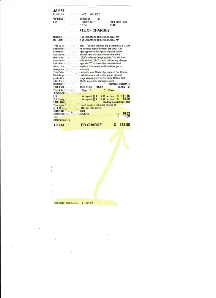 In addition to the bogus LSI charge, other charges were higher than on my reservation (which is no longer available online, interesting): extra day charged $43, s/b $35.99; taxes charged $62.68, s/b $58.13; $5.25 Freq Flyer surcharge?; airport concession fee charged $50.11, s/b $32; for a total overcharge of $186.32.