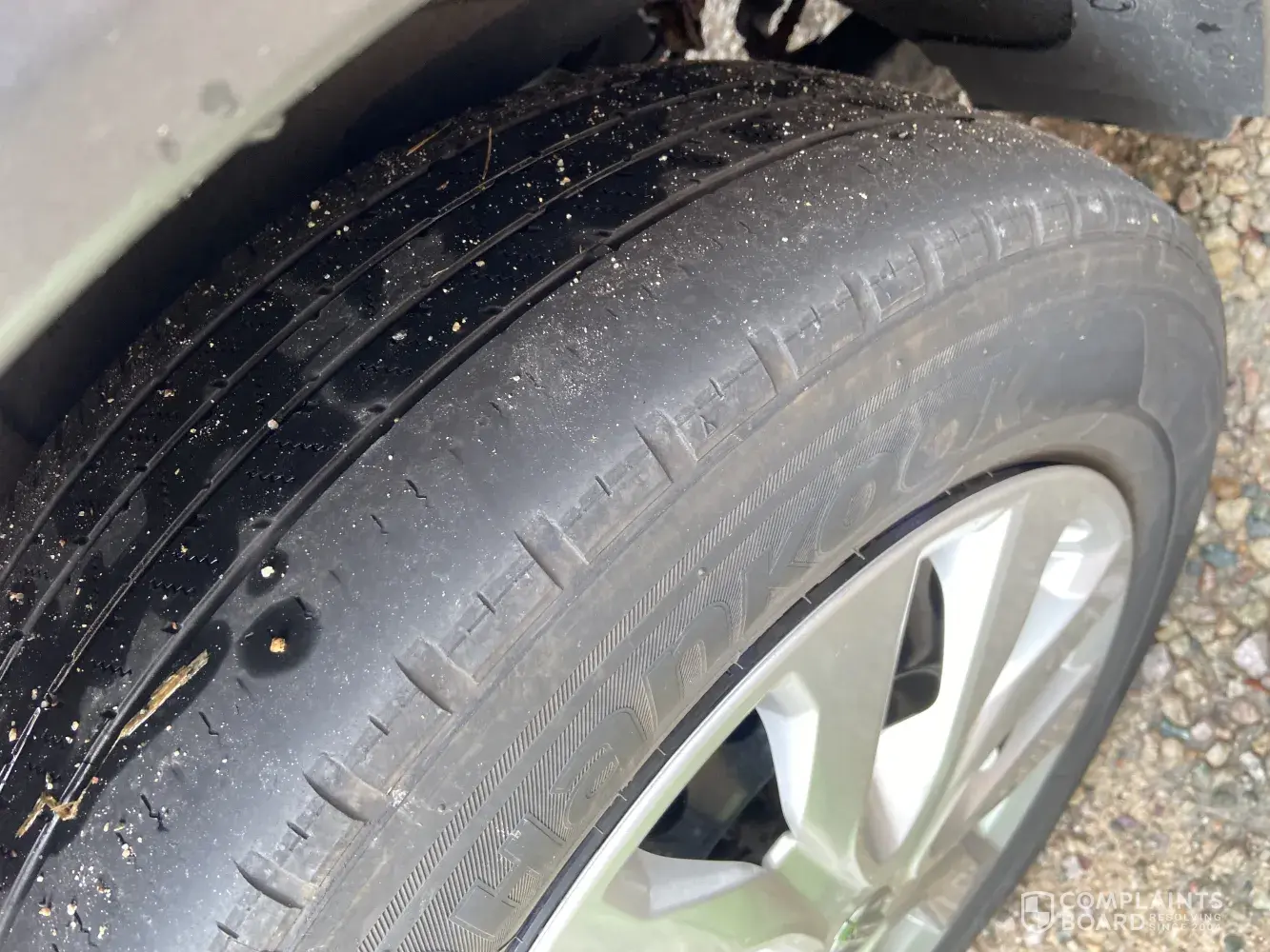 Incident was 9-8-21. On interstate 10 riding while traveling, there was a noise and then a flat tire. AAA came to change the flat and stated the tire had been plugged before and the plug came out. We took the tire to be fixed and it could not be fixed; the tire was no good. We purchase a used tire in order for us to continue during our rental. Our vacation was ruined.