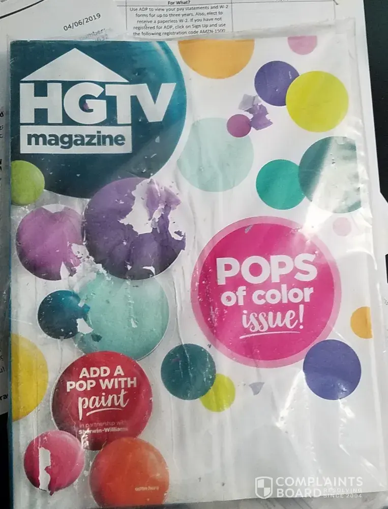 My most recent magazine delivery attempt failed. Due to the new delivery service, Doorfront Direct, the "Pops of Color" issue was laying on my driveway for two days of inclement weather. When I was able to pick it up, not even knowing what it was (I thought it was maybe a new area directory book or something else undesirable), I was understandably upset with the condition of HGTV Magazine. Although, there was a plastic sheet covering, it was obviously not water tight. Also, doesn't "door front delivery" imply that it would be delivered to my doorstep? Because it definitely was not!