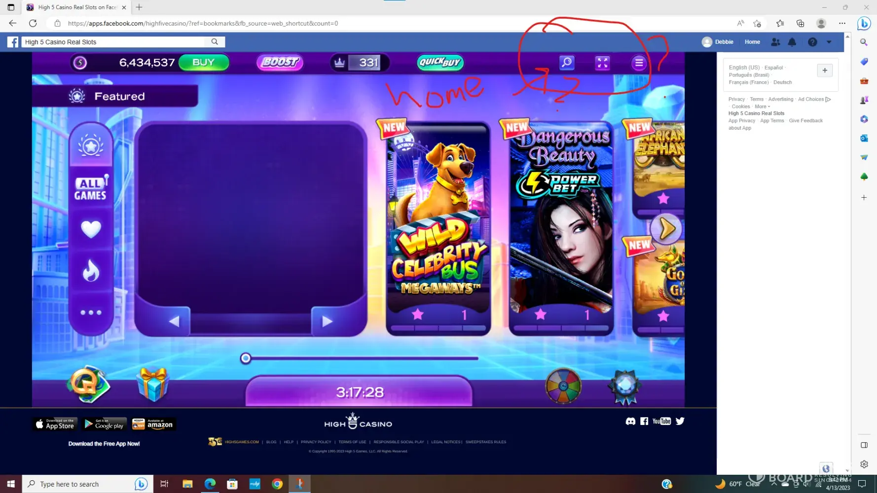 i do not have the home icon on the beginning page when my account connects i just have a magnifying glass i also do not know how to switch from the regular account to that new sweeps thing the quality of this site has really declined the pramatic play is way tooo hard to understand and i am also upset about the facebook free coins I refuse to spend real money to play for fun
