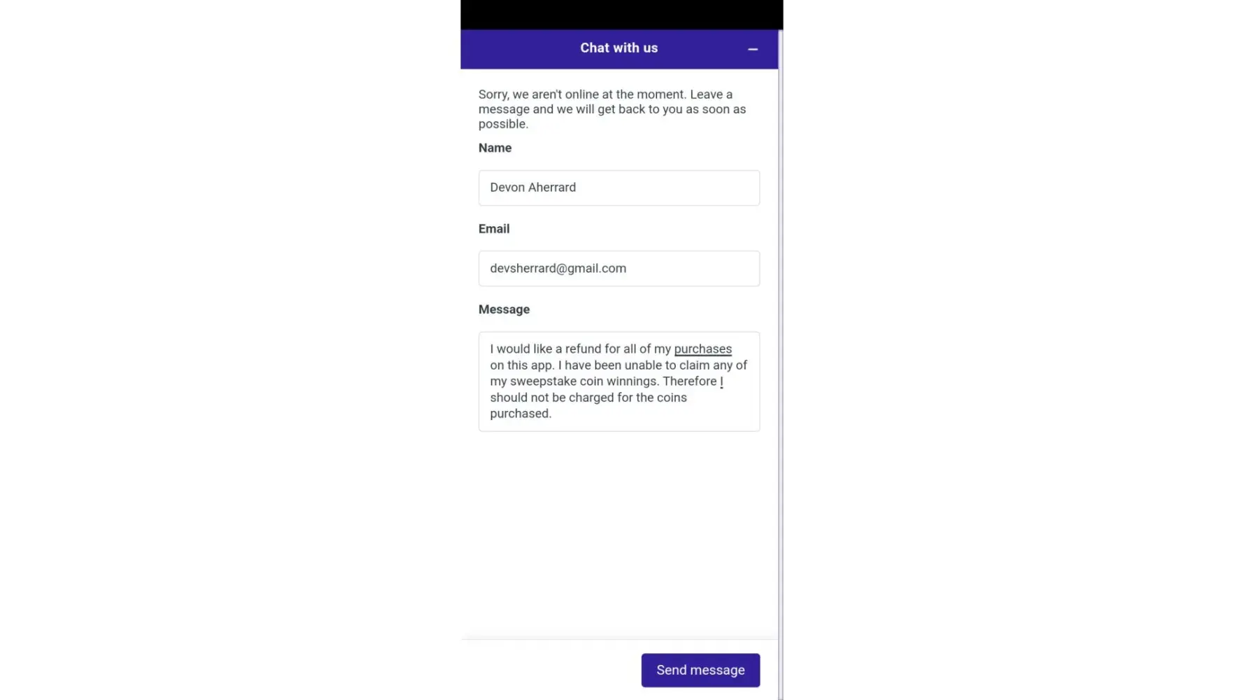 I made numerous in app purchases for sweepstake coins, because they advertise that you can use your sweepstake coin winnings as cash or gift cards. Between 05/24/23-05/27/2023 I spent a total of $670 in sweepstake coins, and had winnings on 05/27/23 over $1200. I made numerous attempts to redeem my earnings as both cash as well as gift cards. I have been unable to do either. After emailing, calling, and messaging through their app to resolve the issue, I have been unable to reach anyone. Although, they claim to have customer support available 7 days a week I still recieved no response either.