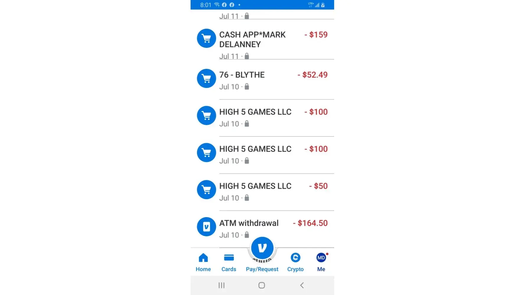 On July 9, 2023 approx. 8:00 am I was playing this eGame while waiting on a shower. I had tried to use my Venmo credit card later that day and it was declined. I then looked at transactions and saw that there were 3 charges by High 5 Games, $100, $100 and $50. They basically left me broke and I was traveling from Riverside CA to Phoenix, AZ. I had to call and borrow money for gas.