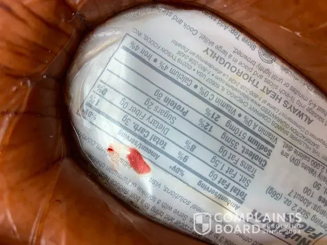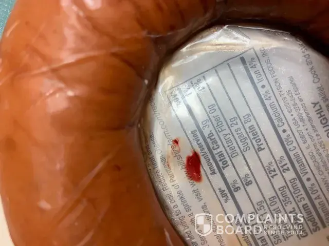 I purchased two packs of the Hillshire Farm Turkey Kielbasa last evening (8/2/2021), after getting home noticed that one of the packs appears to have blood in it? It appears to be human blood, but who knows as the sausage is precooked and should not be from it... I would be really disgusted if it is human blood. That is an unacceptable hygiene food grade error. And yes it is inside the packaging. I am glad I did notice this before serving to my children.