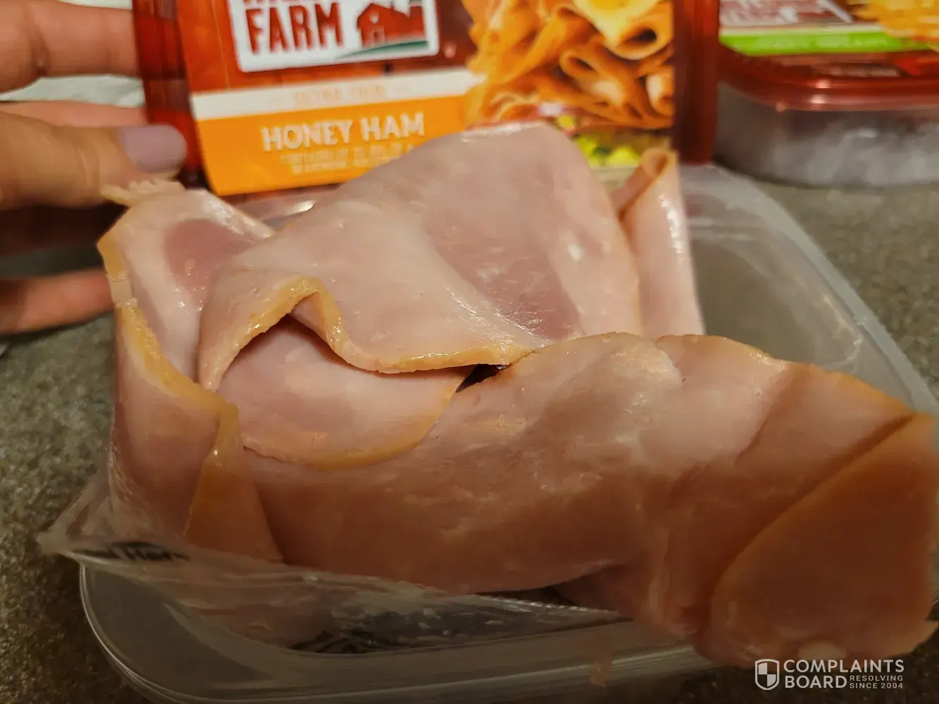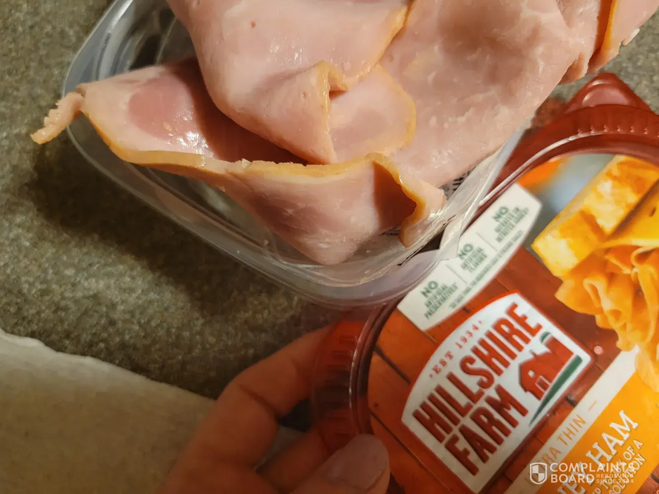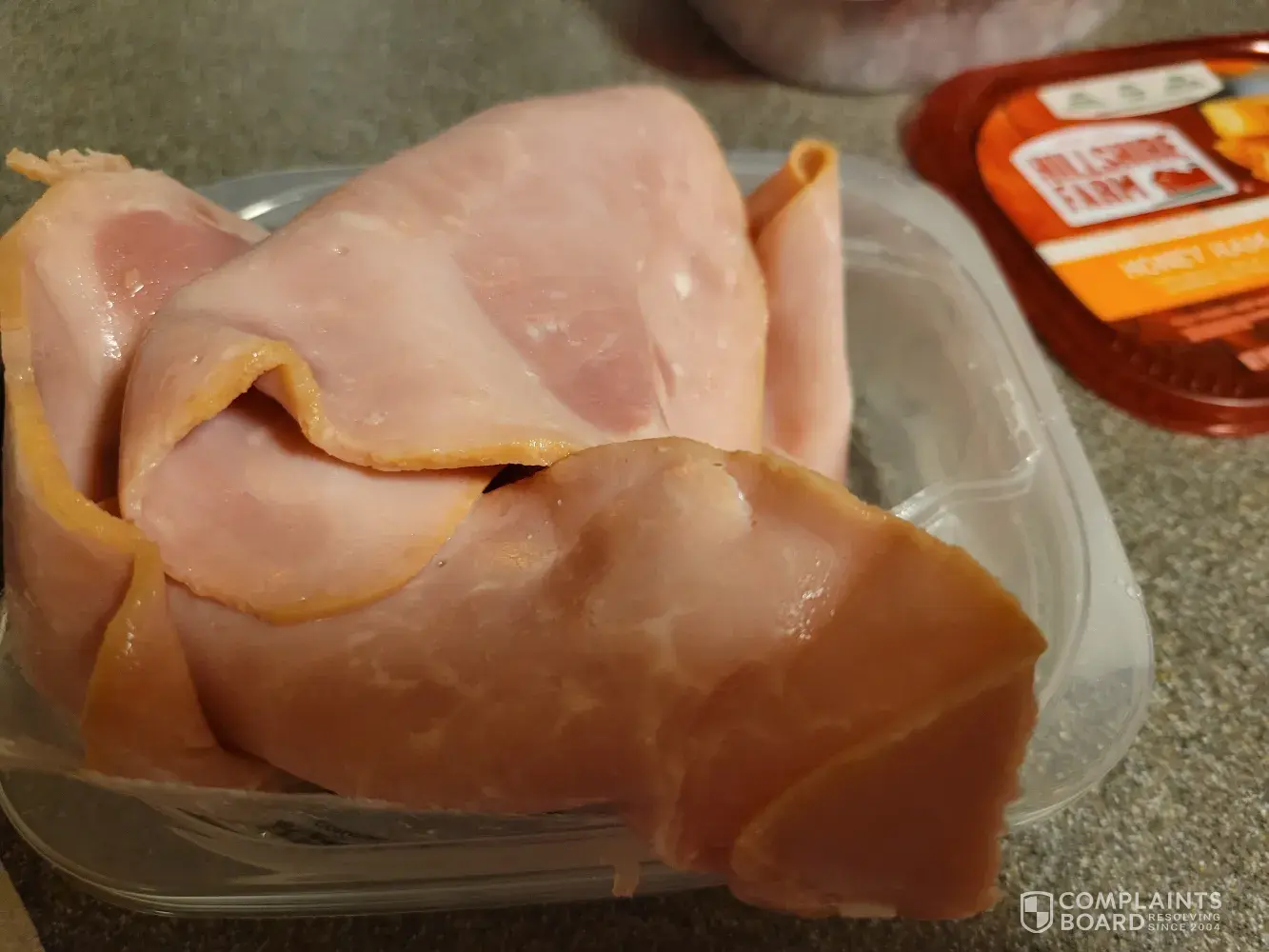 Bought 1lb of ultra thin honey ham from local Walmart and there is a thin layer of plastic around each slice of ham. Very disgusting and disappointing. I strictly use Hillshire Farm products and although this is a first it is very unsettling. How many other products were sold with this plastic and if I purchase more will it be the same outcome? I am grossed out and hope this get figured out and doesn't happen to anyone else.