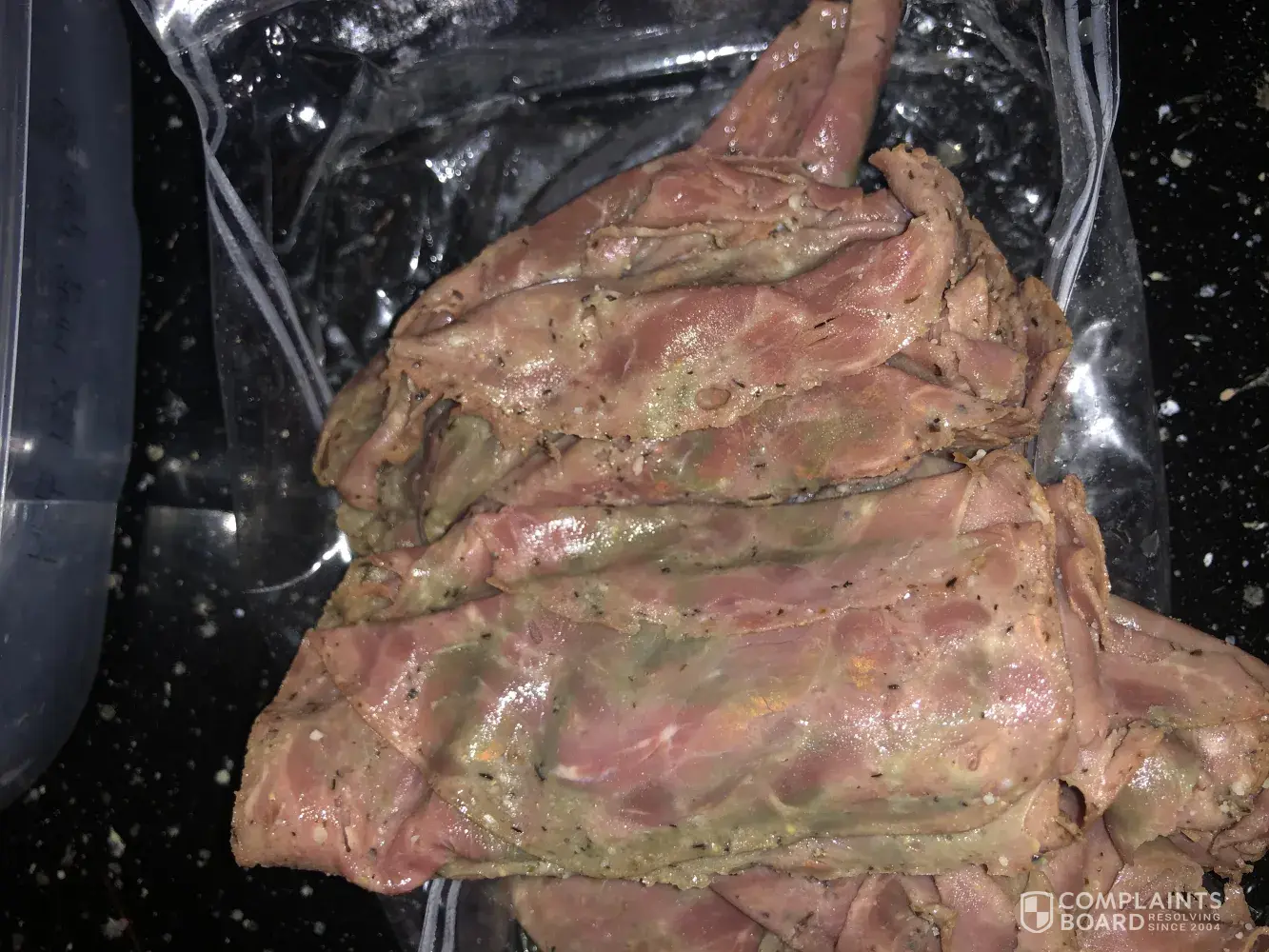 I purchased the above pastrami from Wal-Mart in Delavan, WI on March 15th, 2019 and first used/opened the product on March 19th, 2019. All was good - I made several sandwiches between 03-19-19 and 03-22-19 with no problems. On 03-24-19 I was making a grilled pastrami and cheese sandwich, only to find that the pastrami - (which was in the original packaging and in the original plastic container), was grey and spoiled.
