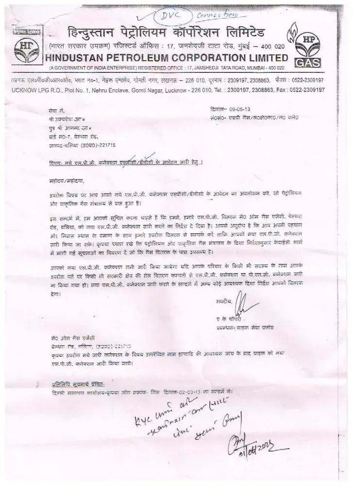 As per direction of local gas distributor "om gas agency" bilthara road ballia u. P this gas connection is applied online by me.