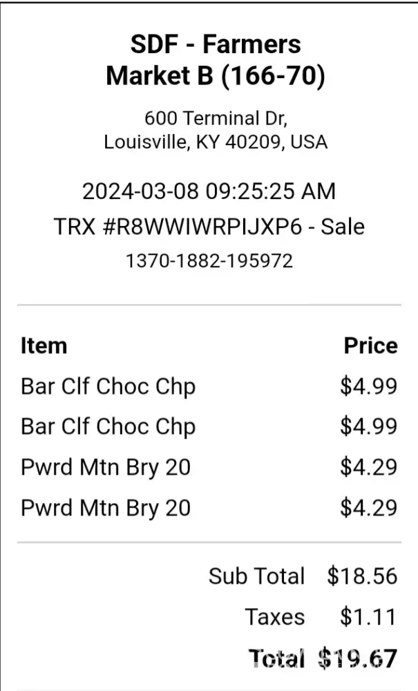 I was double charged for two items at a self-checkout food market in the Muhammad Ali Airport in Louisville, Kentucky on 2/8/24.