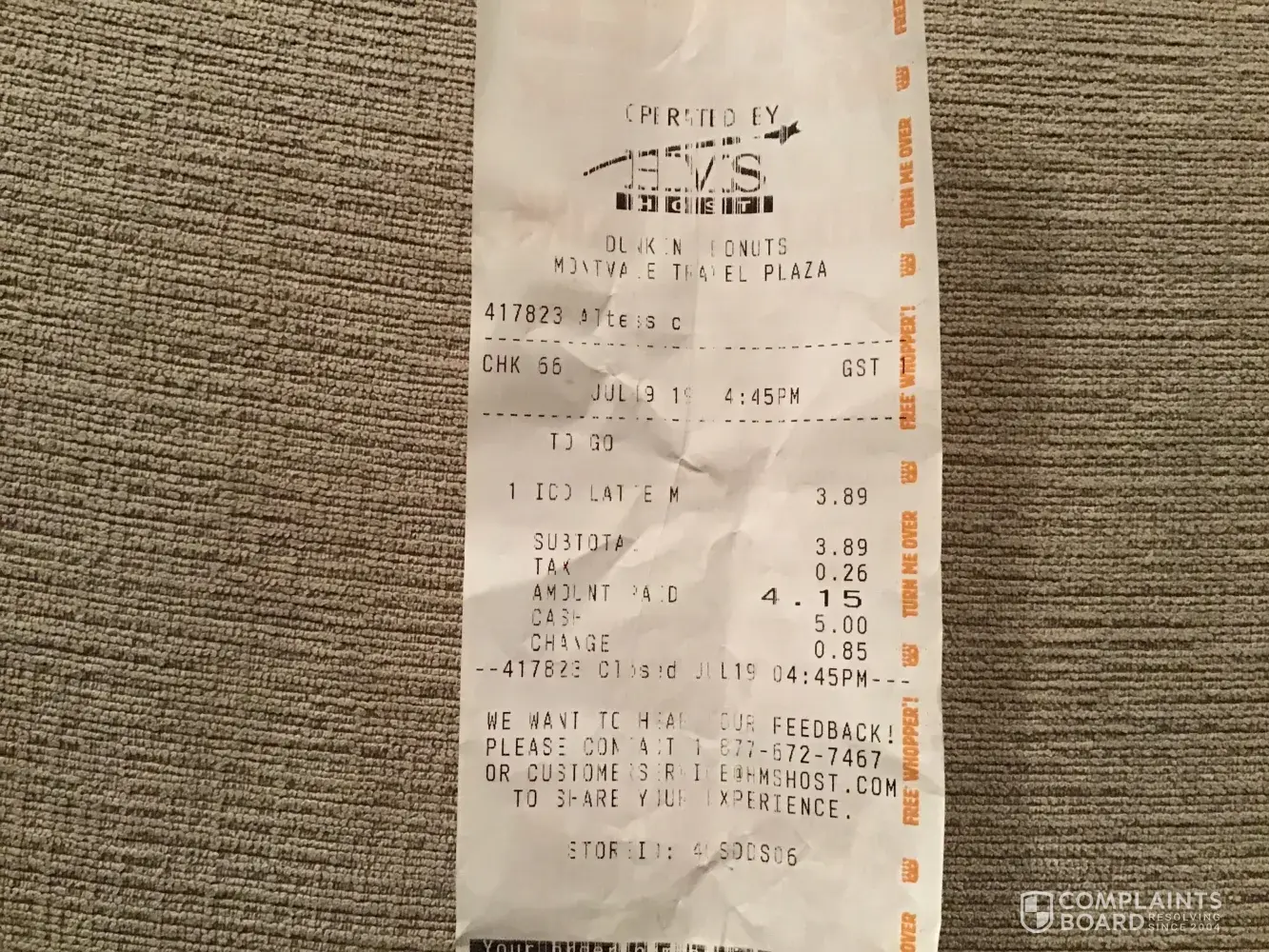I am 58 years old and I've been visiting Dunkin Donuts for as long as I can remember. The service is usually "ok to good" with the occasional exceptionally good. On July 19, 2019 I experienced the opposite - exceptionally BAD. I walked into the Garden State Parkway Rest Stop around exit 160 in northern NJ. There were two customers in front of me. The first customer was tended to for more than 5 minutes. I could not hear what she had ordered but assumed it must have been a large order based on the long time it took. I did see that her total came to $18 which told me there was probably no legitimate reason for this. It took the woman in front of me a few more minutes to place her order because she couldn't catch anyone's attention to place it. I finally got to the counter and my order was simple. One medium iced caramel latte. I paid and the young lady turned around to talk to another employee at the same time she attempted to hand me my change. She couldn't find my hand since she was too busy being turned around and ignoring the customer she was helping - me. Not once did she acknowledge the completion of my transaction. No "Thank You". No "Have a Nice Day". Nothing. I proceeded to the order pick up area and began my next wait. I watched people order and leave behind me. Approximately 10 more minutes went by when I loudly said, "CAN I PLEASE HAVE MY ICED CARAMEL LATTE?" Every employee stopped what they were doing and looked at me with vacant expressions on their faces. I had to remind the young lady who took my order and show my receipt at which time a gentleman behind the counter stopped what he was doing to make my drink. An older gentelman standing nearby when I loudly requested my drink began to apologize repeatedly. I told him that this was the slowest, most disorganized Dunkin Donuts that I have ever visited. Do you know what he said? You guessed it. "I'm sorry."
