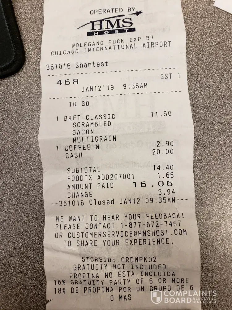 On Saturday, January 12, 2019 at 9:35 am I stopped at Wolfgang Puck's for breakfast. I ordered the classic breakfast. the chef making the eggs did a fantastic job. They were perfect. However, the potatoes were just barely warm and seemed to have been put in a warmer from refrigeration. Horrible. The toast was taken out of a steamer as well and was cold. The bacon was cold/warm although it was tasteful. Coffee was hot. I paid $16.06 for this unsatisfactory meal and will never eat at a Wolfgang Puck again.