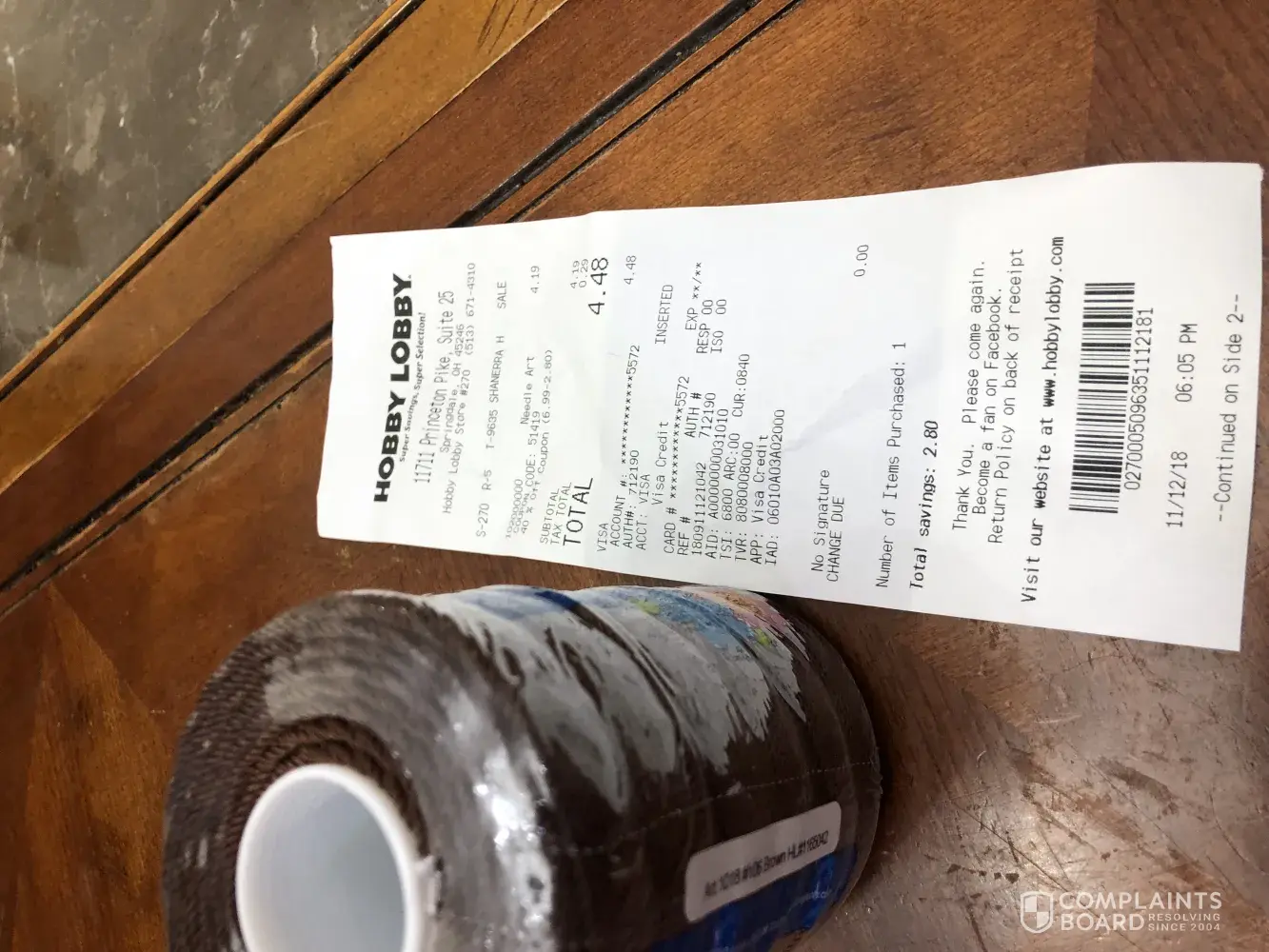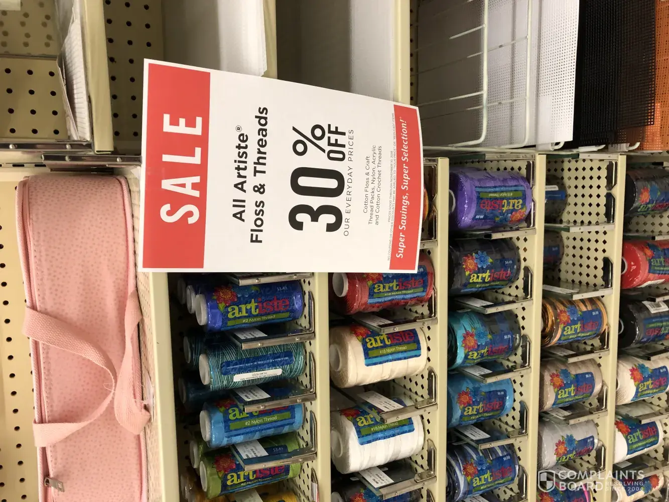 I shop at my local Hobby Lobby 11711 Princeton Pike Spring Dale Ohio store #270 today 11/12/2018 at 6:15PM. Saw a sign for all Artiste thread is 30% off. I take a few of #18 nylon threads to check out. The cashier asked the guy working there to go check, he came back quickly said no sign. I knew he didn't check. I brought just one with my online coupon since I don't want to hold back the check out line. I ran back to take a picture of the sign just to let the cashier knows so it won' t happen to other customers. When I am almost there, he ran right after me and asked me if I need any help, I told him no I don't need help because the sign still there why he said no sign so I am taking picture & show to the cashier. Then he told me he looked at wrong before. Haha what a coincidence. He immediately ran quickly before me to the cashier & tell her he looked at wrong stuff. It is 30%off . Funny after I already purchased & went back took picture. I show the cashier the picture, she told me to purchase the rest of my purchase but I was no longer interested. Just want to straight this out. No body deserves this. Please work with your heart, everyone already has a long day, tough life . I hope this won't happen to other people. Normally I don't have any problem with this store. Look like it was just wrong day with wrong people. I attached the ad & the thread so you can see it is real & just happens today.