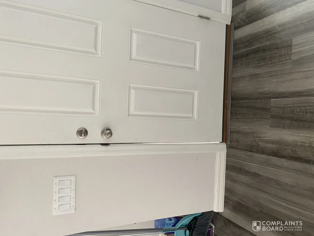 I moved in my house in April of 2020. When we did the walk-through the front door was hard to lock. The Field Manager (Ted) had told me that was the second door that was but on this house and he would return to replace the hardware for the front door which he did. The door still does not closed properly. You have to lock both locks in order for it to stay closed and you can see the gap under where bugs or even a snake could come in. Same issues with the door going to the garage. The warranty guy (Tito) has looked at it twice and promised to come back and fix it back in November saying he needed to order the materials. Now it been 3 months. So I called him and he told me he would come fix it next week. I text him again Friday and he responded on Monday said he had the materials and I ask him when he was coming to fix the door and he did not answer. Warrant guy is horrible about responding to call and text. The light switch next to the slider is crooked which he was made aware of and never address.