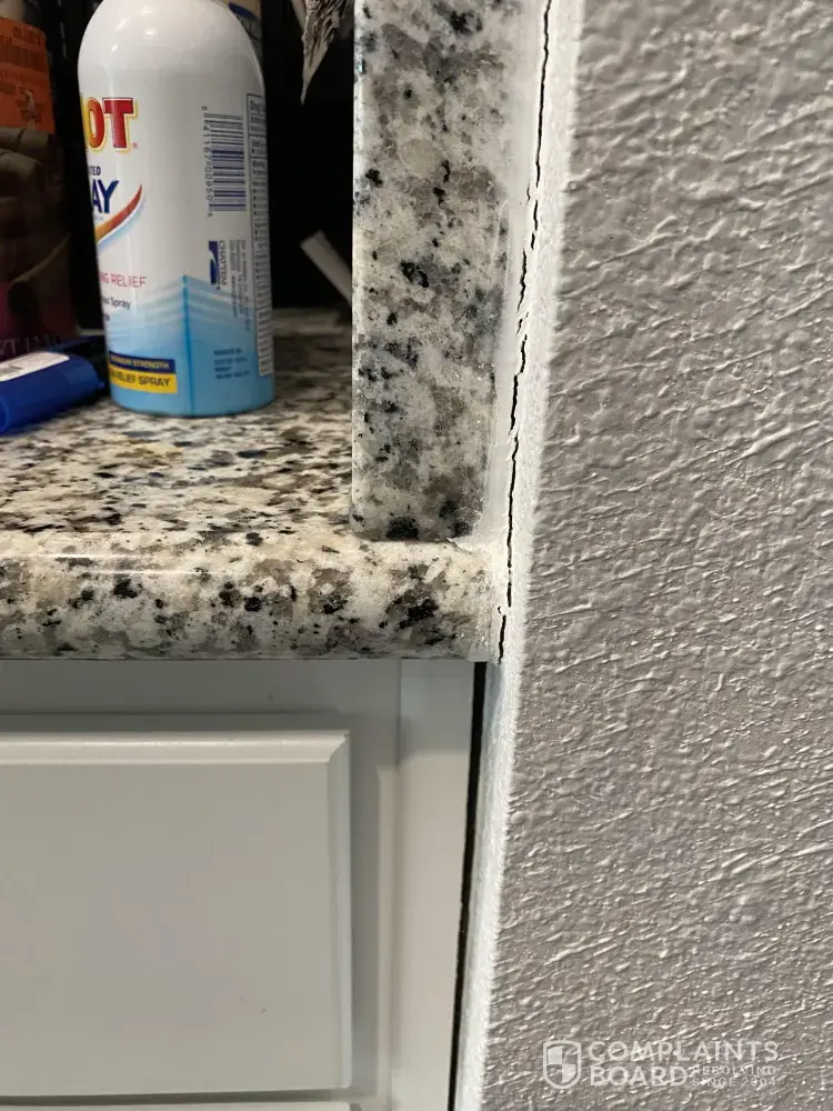We have been waiting 3 months for him to return so we can also address the gap between the wall and the cabinets. I don't think after we have lived in this house long enough for it to start settling.