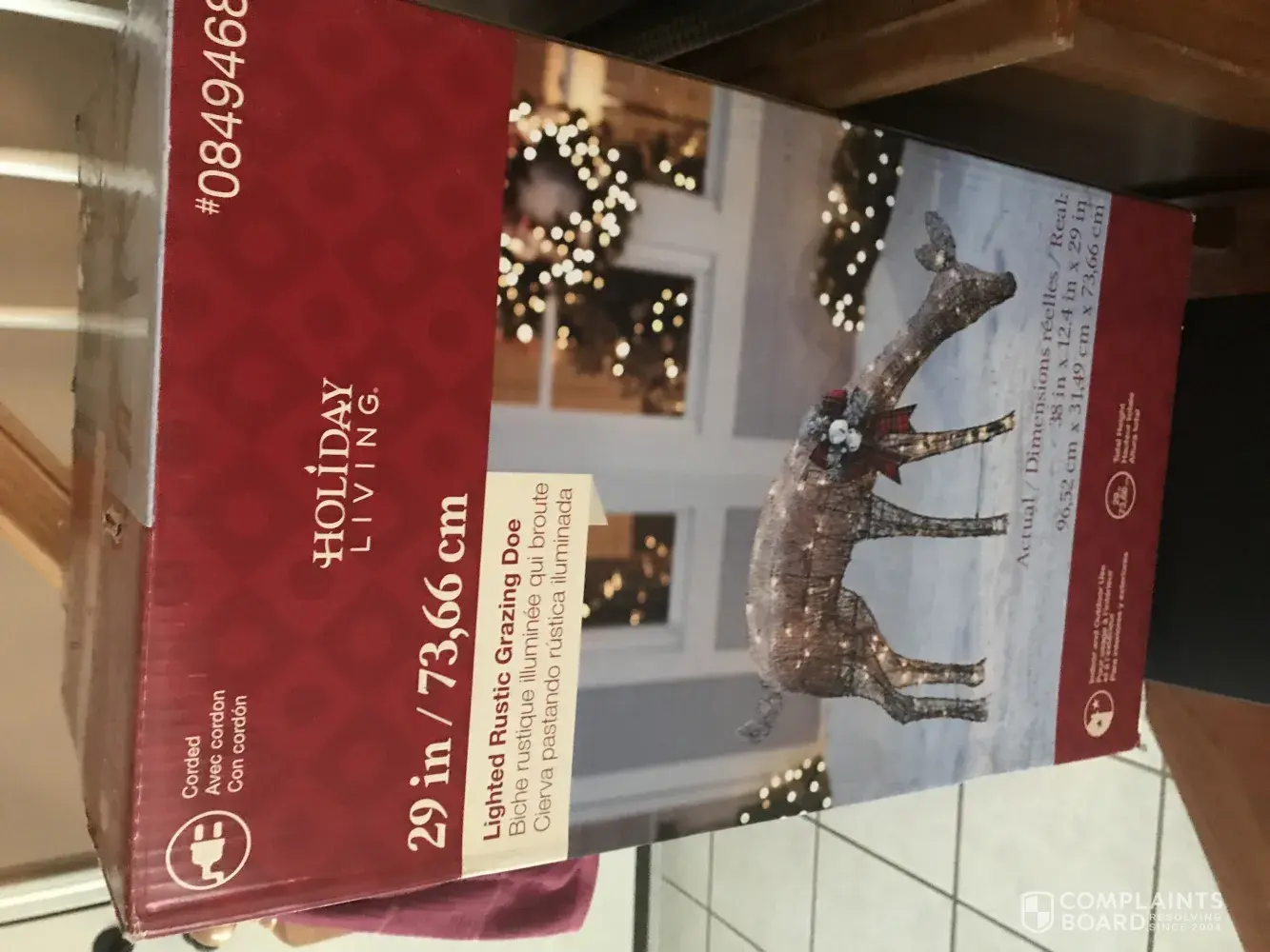 Same issue with Holiday Living reindeer I purchased November 6 2021. Used it for one month and half the lights are not working now. I.am unable to locate a number and Lowe's was not helpful. Filed a complaint on BBB Lowe's called back with no useful information. The rep Cynthia did the same thing I did and googled a number which was not Holiday Living. Did not honor a credit or partial credit. Concern would be for all consumers who continue to purchase this line and losing money. Upset that Lowe's continues to sell this line.