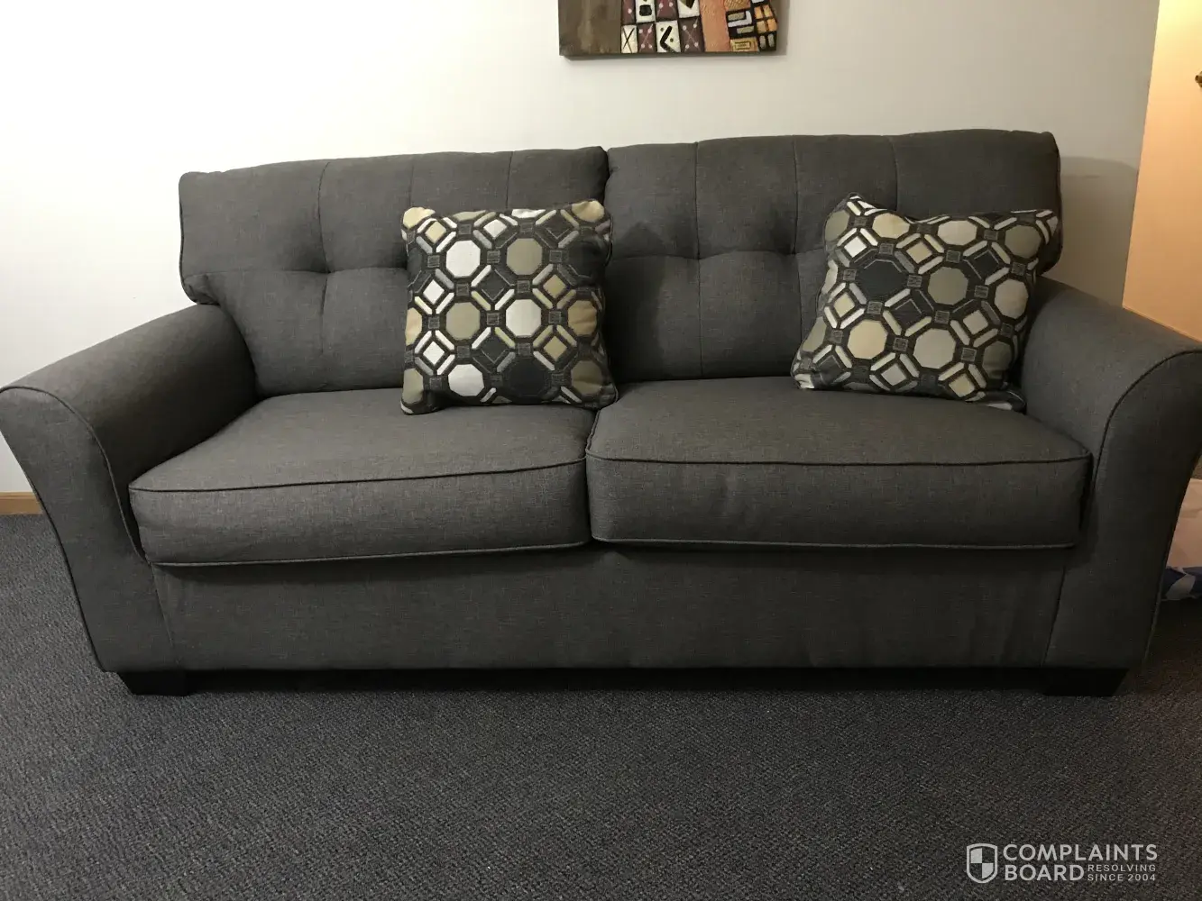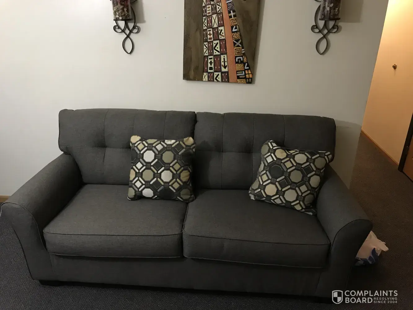 I ordered a couch from them. I got my couch yesterday. It was wrapped nice . When I opened it I was shocked. It was a grey color. I ordered a brown color. When I seen this couch it was brown the Sales Consultant Rick said it will turn brown in the light. I'm so disappointed. It doesn't match my front room at all. This was my first BRAND NEW Couch for me and my son apartment. I'm SO, SO, So, SO VERY DISAPPOINTED.he lied so he can make a sale shame on him. I will never buy anything from there again.it is a high priced couch. It's' not worth it.