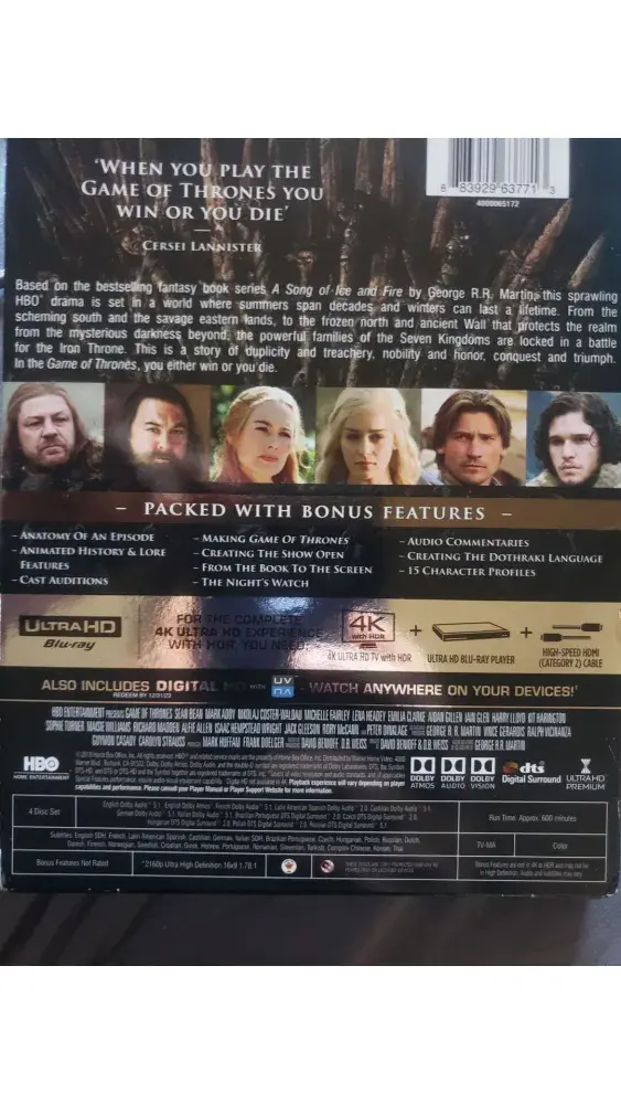 Hi I just bought HBO Games of Thrones season 1 4k retail box version.