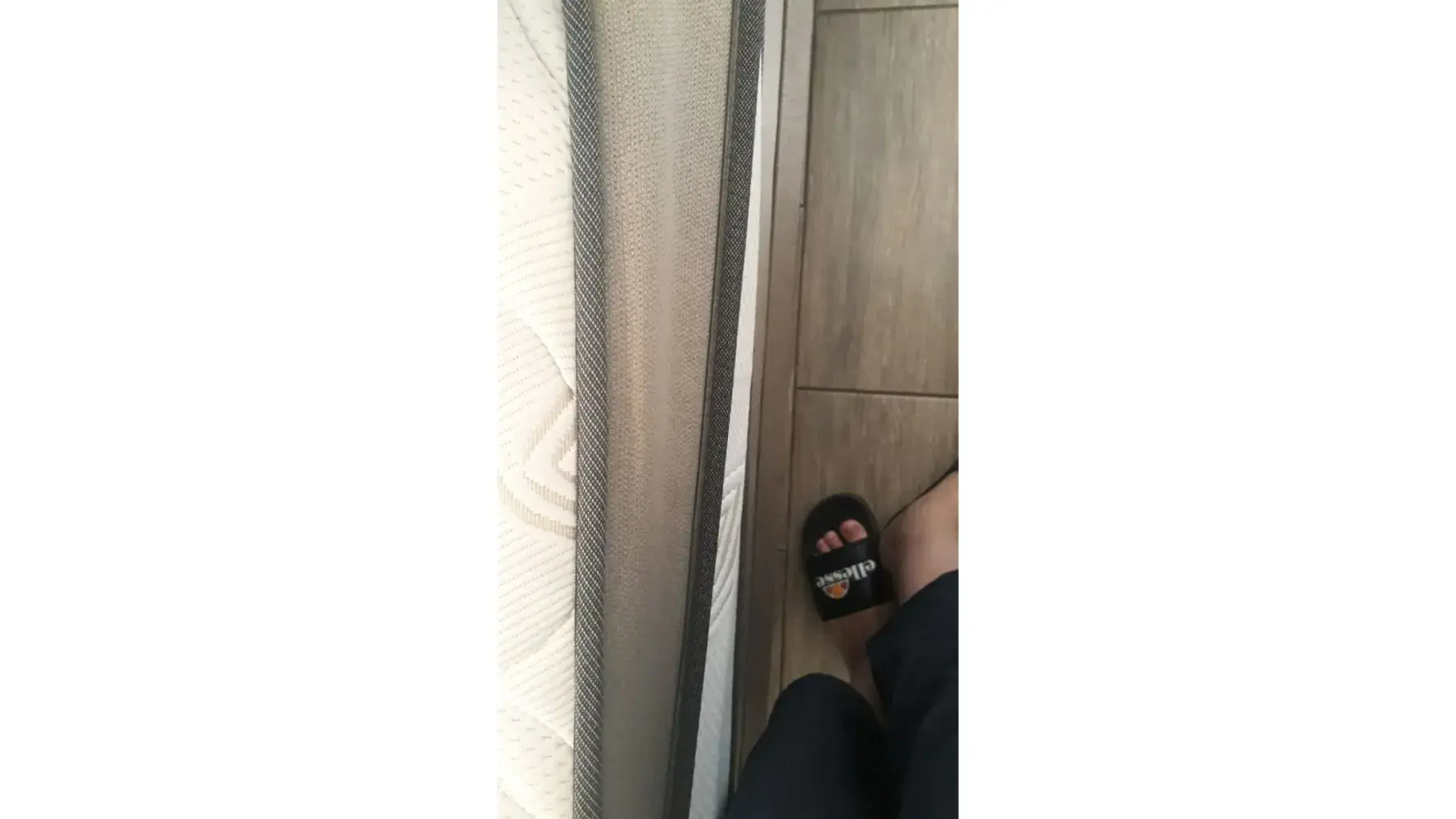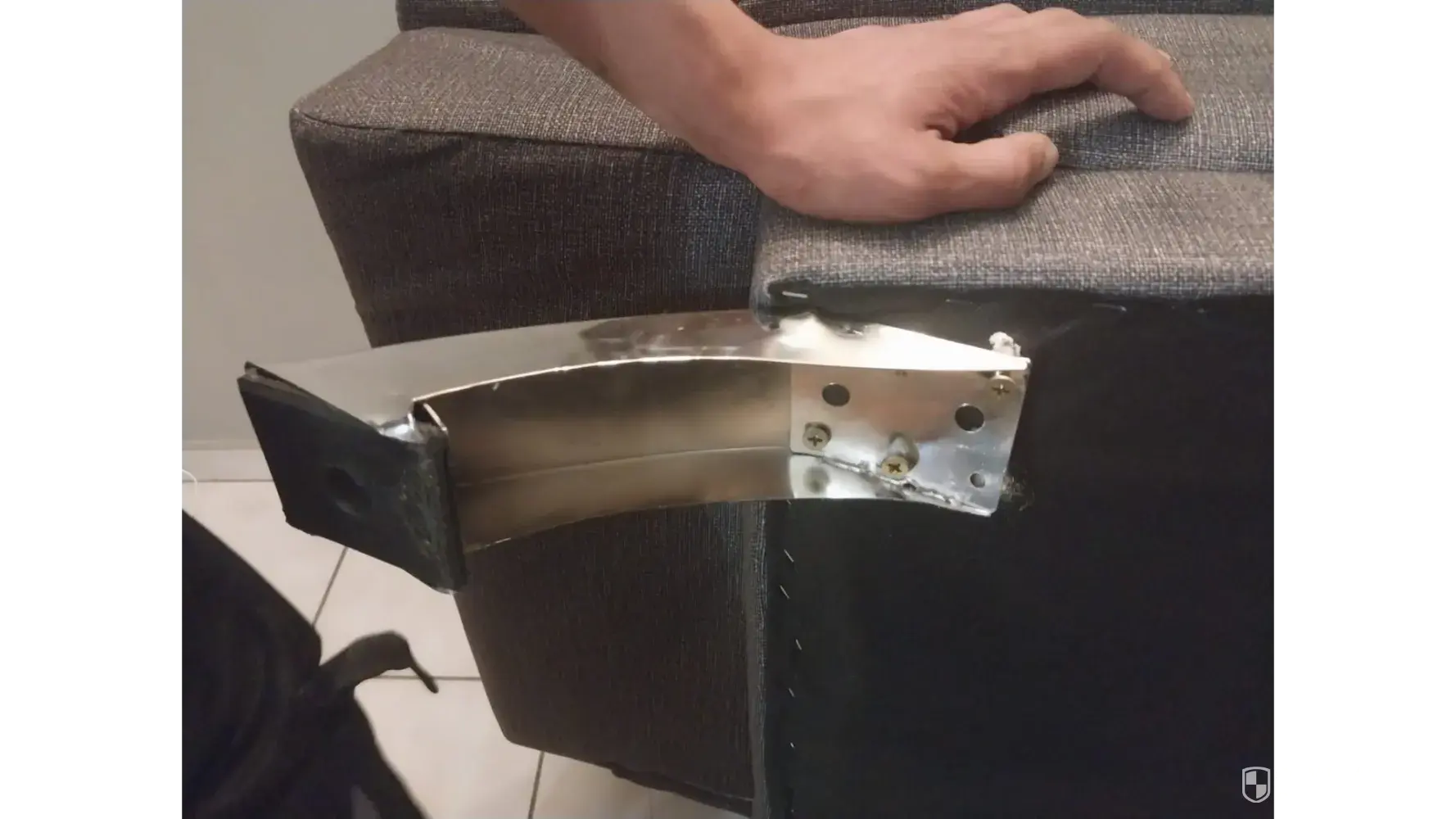 The above picture was from the first day we received the sleeper couch. All the other products we bought we are extremely happy with however I'm very disappointed and disgruntled as we do not even have the sleeper couch for a month but the pictures below will show the poor quality of the support (leg) provided.