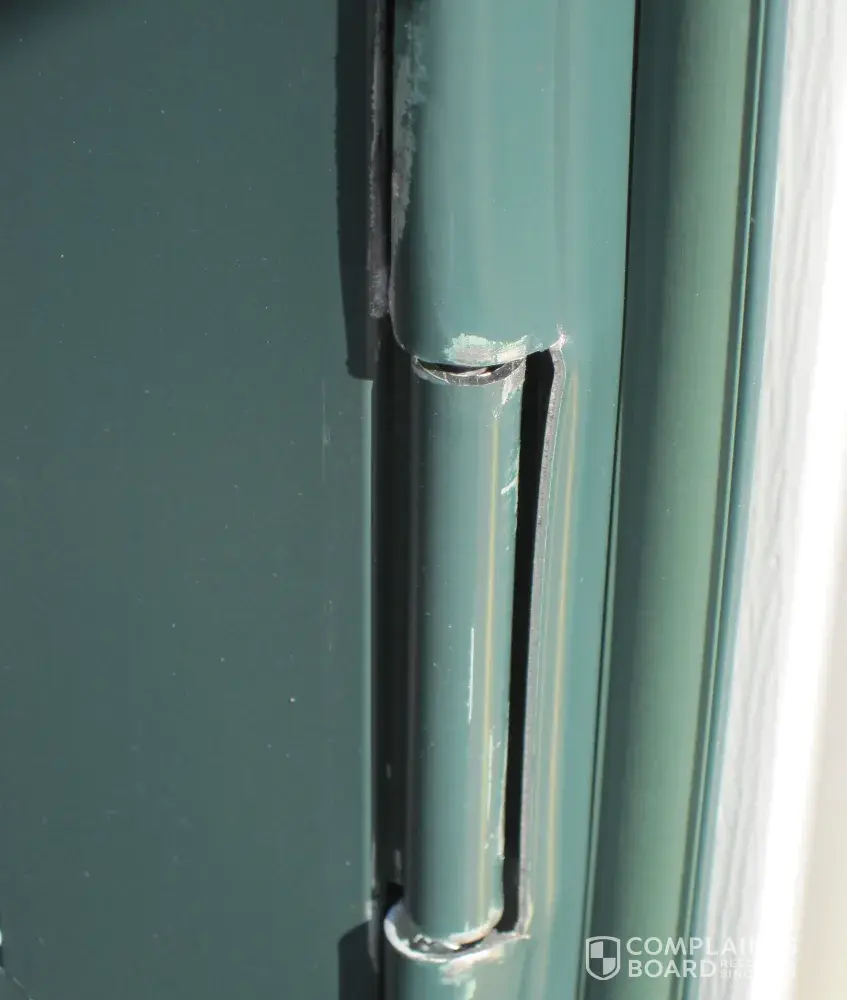 After the doors were fixed, and in between the hospital visits, we contacted Home Depot for compensation. A local assessor came out and insisted that was wind damage, which she claims for which HD is not responsible. We tried to explain that the screws to secure the doors were too short (1/2 instead of 3 as required) and there were only two nails to support the bottom part of the door instead of six. Accordingly, the door became tilted and was not locked properly. In addition, the door frames were not caulked at all to seal the openings between the outside wall and the door frames.
