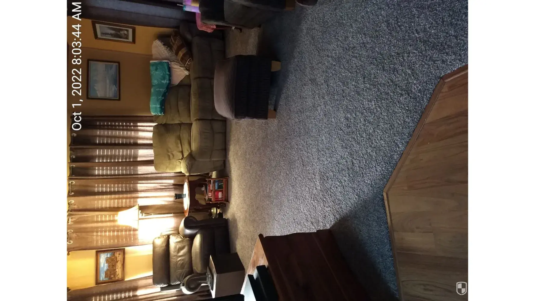 Desired outcome: We'd love our beautiful carpet to be re-installed without an obvious seam line as we enter our living room. It's embarassing and unacceptable.