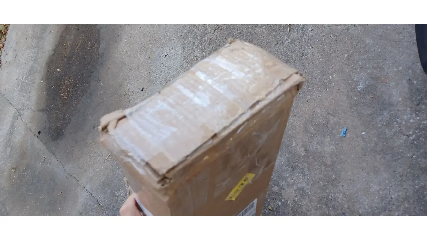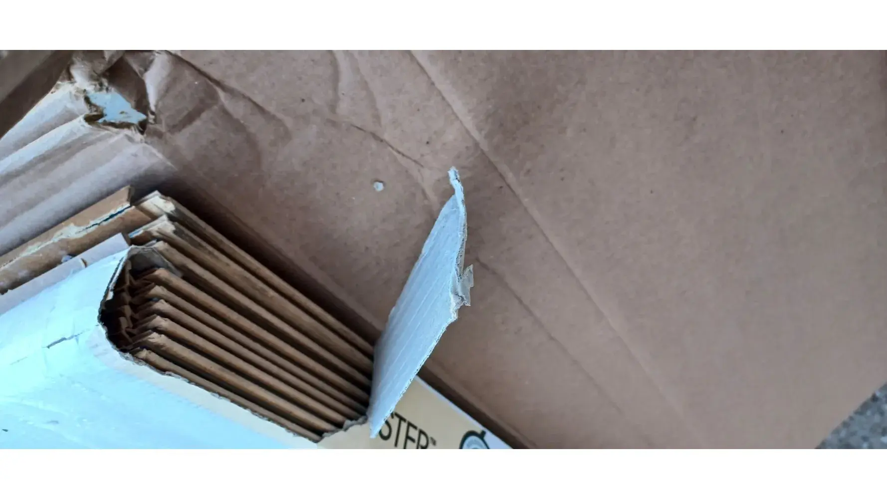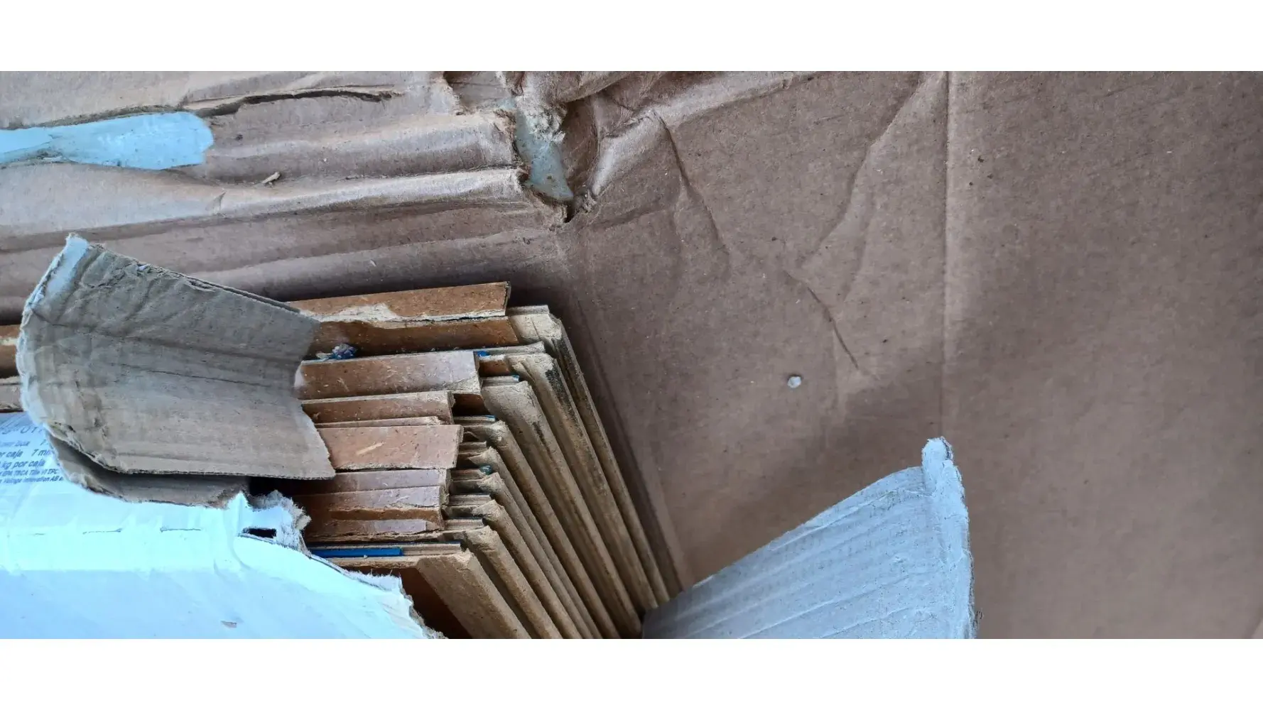 We had to purchase additional flooring to replace some of the original order that had damaged pieces. It was a week late just like the original order causing delays for the contractors. This is what the two boxes looked like when I opened them. They left it outside the garage at 630 AM and signed for me and I can see why. It appears that they threw or just dropped the boxes on their ends. One whole box, with the plastic wrap torn open is useless.